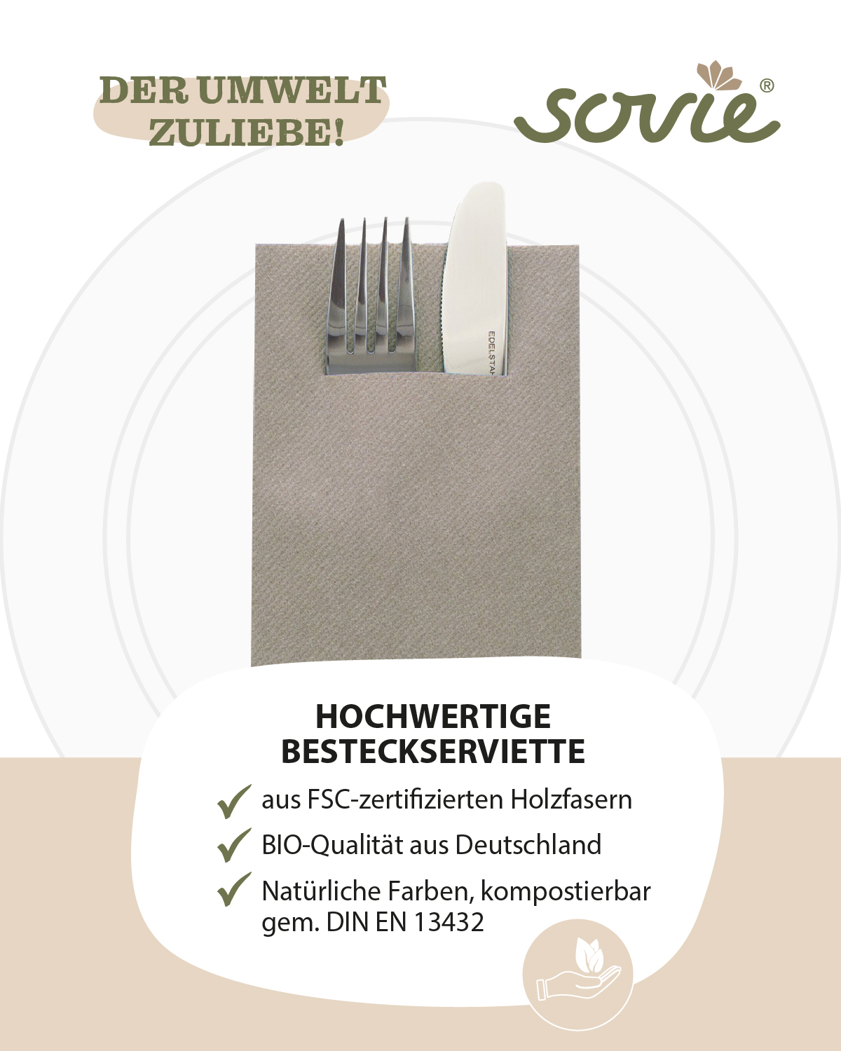 Die Besteckserviette in BEIGE GREY aus hochwertigem Linclass® Airlaid Material ist eine elegante und stilvolle Wahl für Ihre Tischdekoration. Mit einer Größe von 40 x 40 cm und dem praktischen 1/8 Falz kombiniert diese Serviette eine hohe Saugfähigkeit mit einer edlen, zurückhaltenden Optik. Die BEIGE GREY Farbe sorgt für eine warme, aber dennoch moderne Ausstrahlung, die sich mühelos mit anderen Farben kombinieren lässt und somit für jede Art von Anlass geeignet ist.