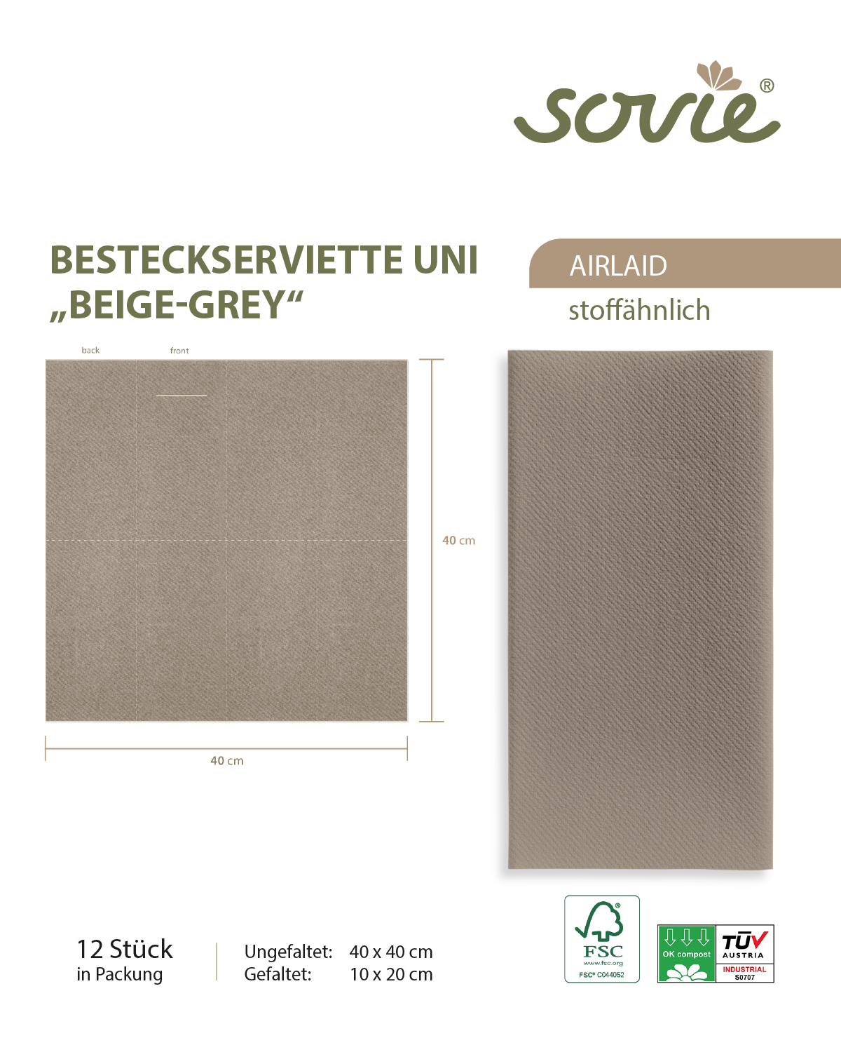 Serviette Beige-Grey aus Linclass® Airlaid 40 x 40 cm, 12 Stück