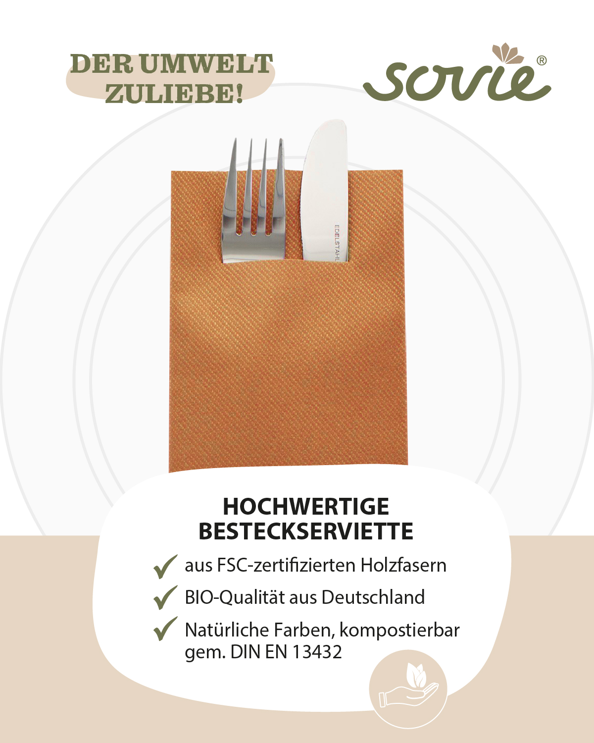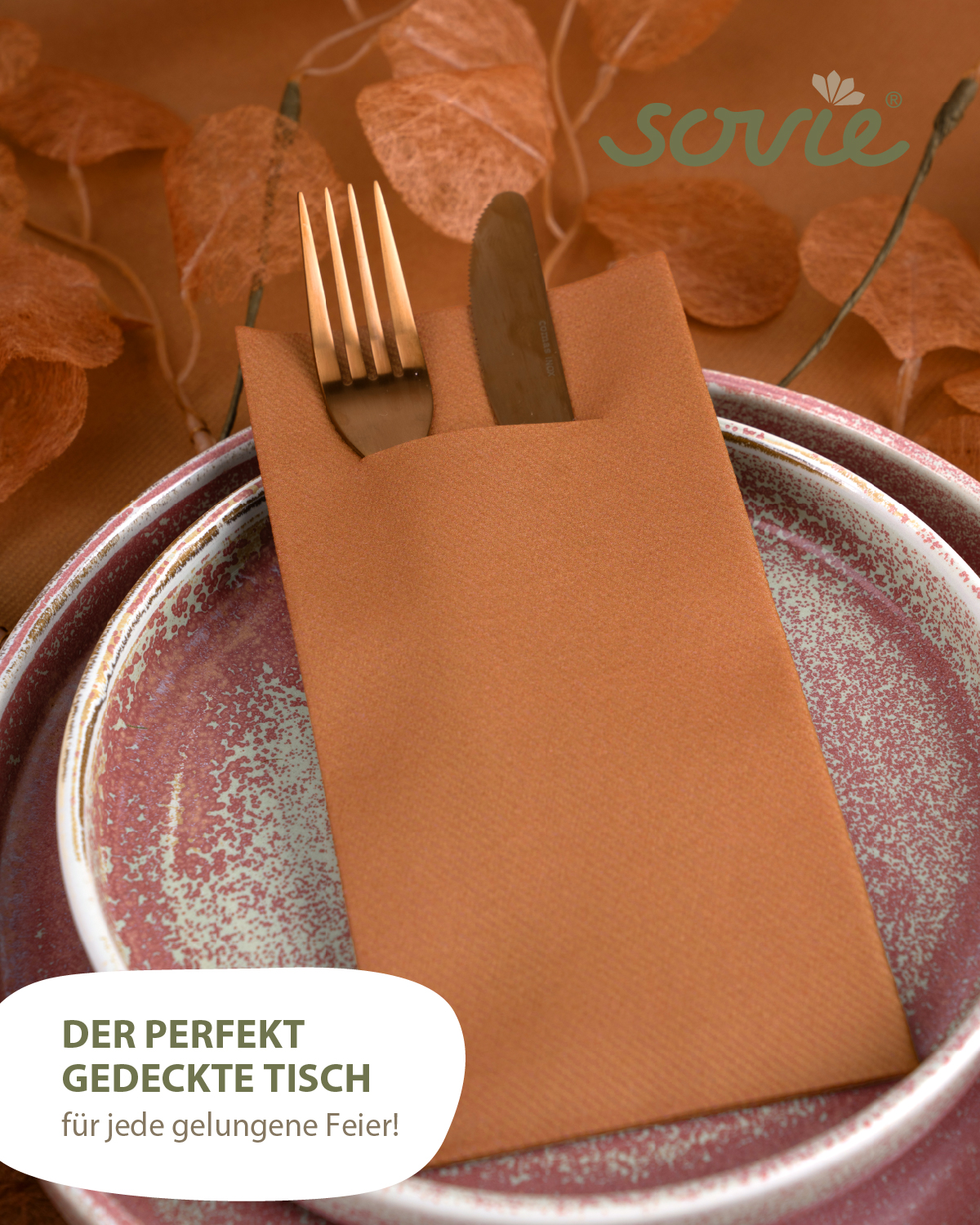 Die Besteckserviette in BRONZE wird in einem Set von 12 Stück geliefert, wodurch sie sich bestens für größere Veranstaltungen, Feiern oder besondere Anlässe eignet. Sie sorgt für eine elegante und gleichzeitig warme Atmosphäre und rundet jedes Tischarrangement perfekt ab. Entscheiden Sie sich für diese hochwertige Serviette in Bronze, um Ihrem Event oder Dinner eine edle und stilvolle Atmosphäre zu verleihen.