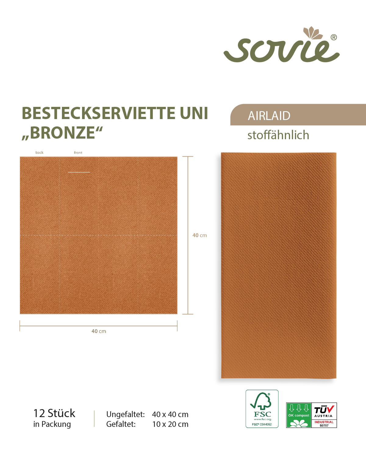 Serviette Bronze aus Linclass® Airlaid 40 x 40 cm, 12 Stück