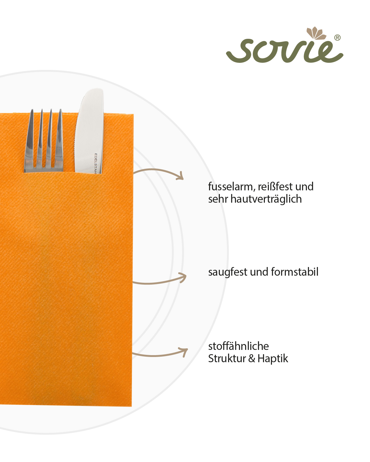 Bringe mit der Besteckserviette in CURRY/ORANGE aus Linclass® Airlaid eine warme und einladende Atmosphäre auf deine Tafel. Der kräftige Farbton sorgt für einen stilvollen Blickfang und verleiht jeder Tischdekoration eine elegante Note. Perfekt für gehobene Gastronomie, festliche Anlässe oder herbstliche Events – diese Serviette kombiniert hochwertige Optik mit praktischer Funktionalität.