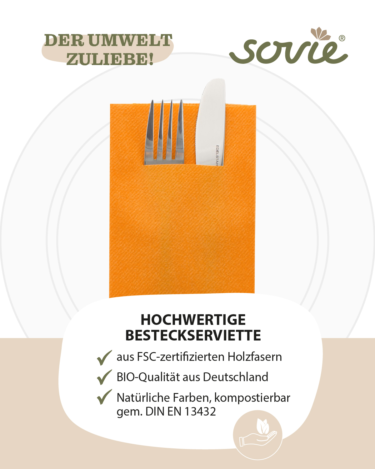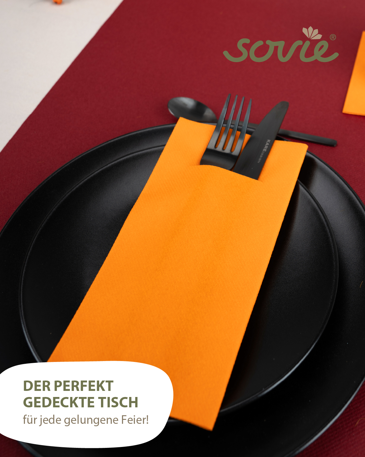 Hergestellt aus Linclass® Airlaid, überzeugen diese Servietten durch ihre hohe Reißfestigkeit, exzellente Saugfähigkeit und Umweltfreundlichkeit. Sie sind strapazierfähig, fusselfrei und behalten auch bei längerer Nutzung ihre Form. Die Kombination aus edler Optik, hoher Qualität und praktischer Handhabung macht die Besteckservietten in CURRY/ORANGE zur perfekten Wahl für eine gehobene Tischgestaltung.