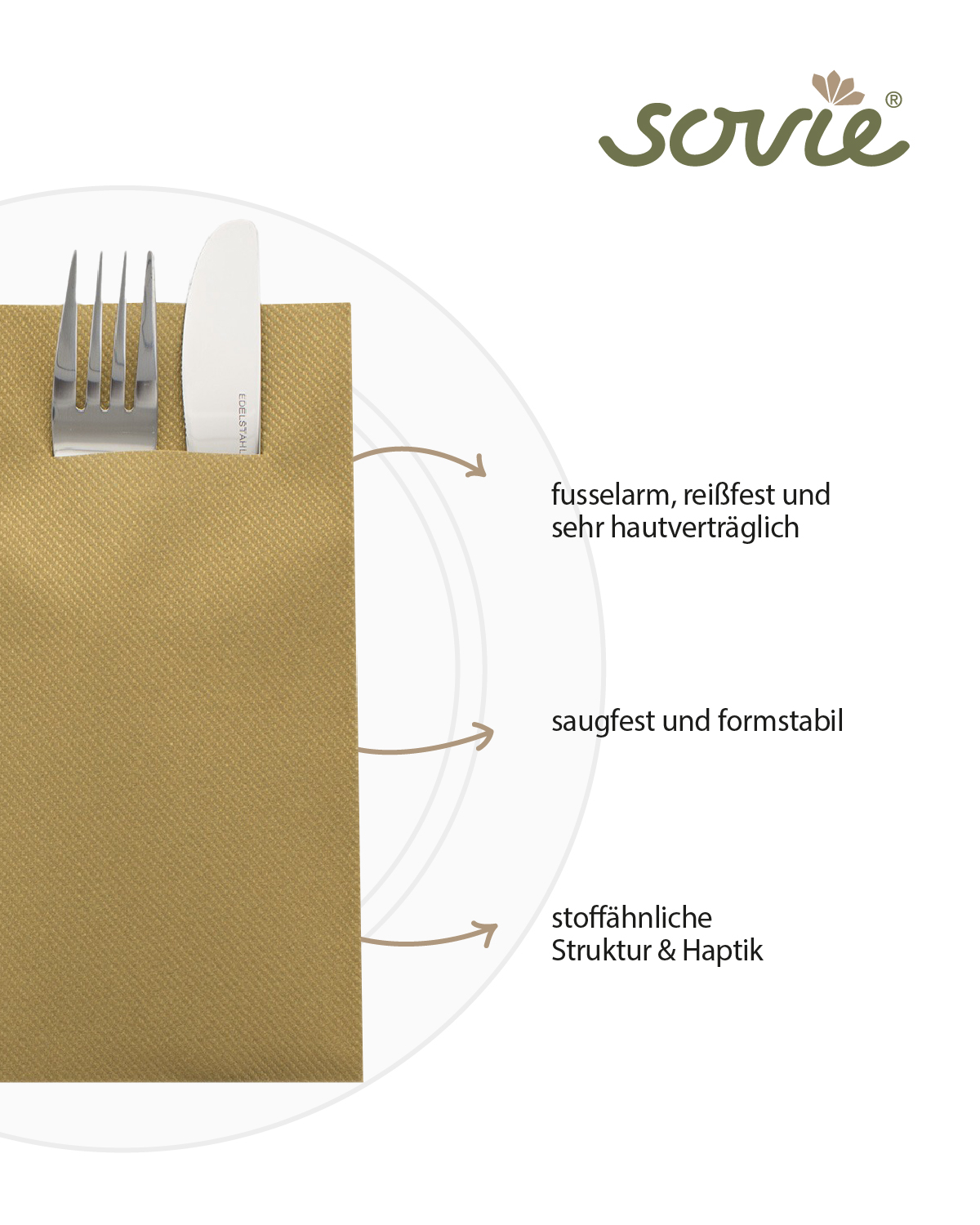 Besteckserviette Gold aus Linclass® Airlaid 40 x 40 cm, 1/8 Falz, 75 Stück
