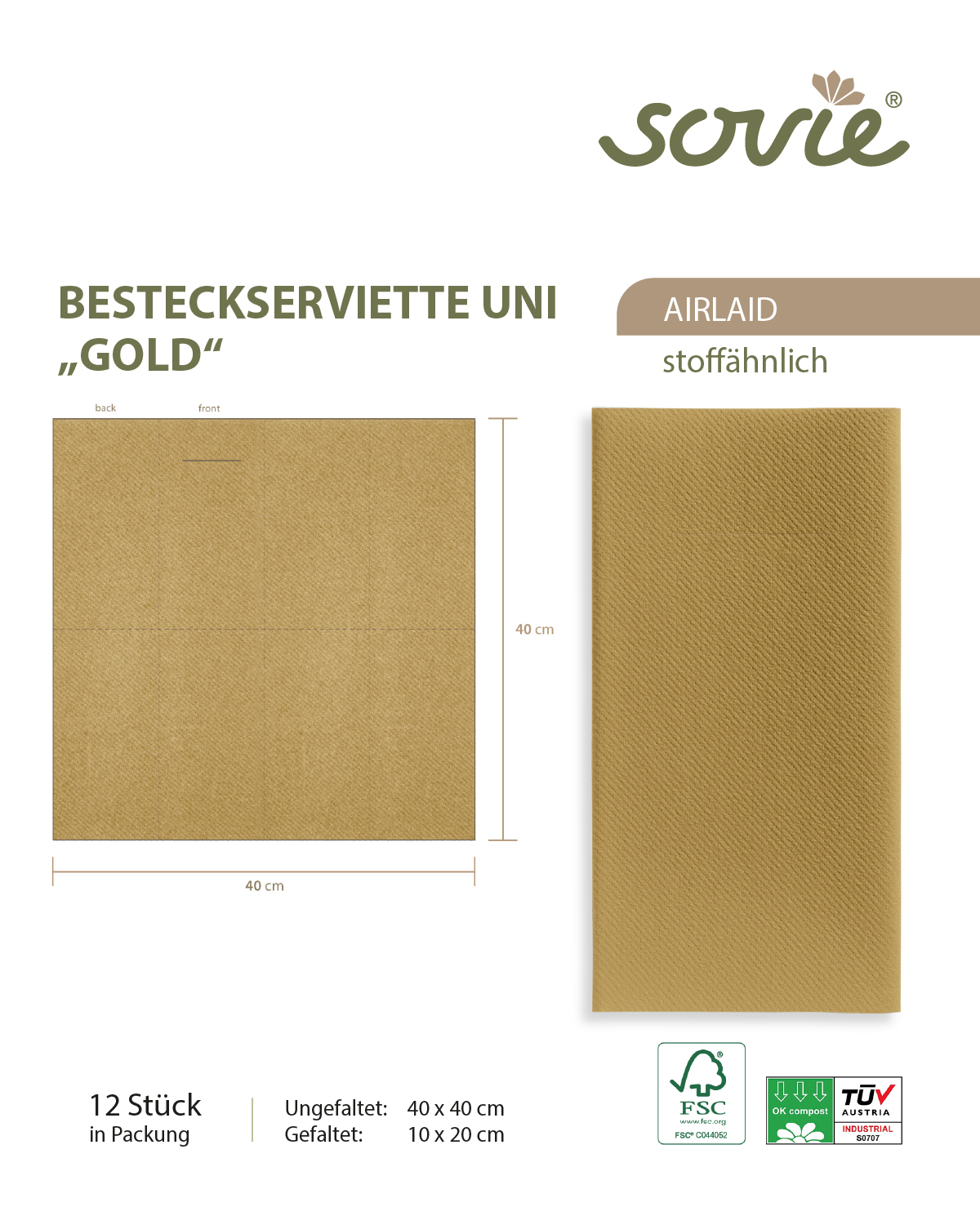 Serviette Gold aus Linclass® Airlaid 40 x 40 cm, 12 Stück