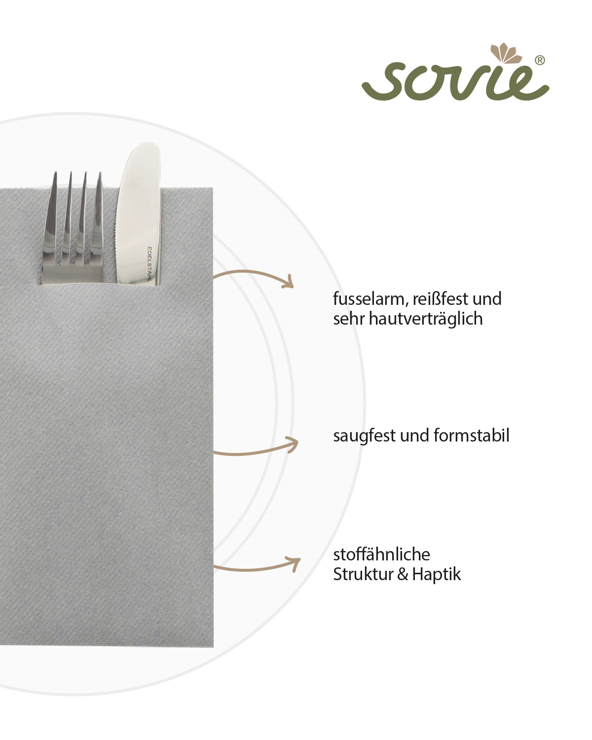 Besteckserviette Softpoint "Pub" in Grau, 40 x 33 cm, 1/8 Falz, 50 Stück