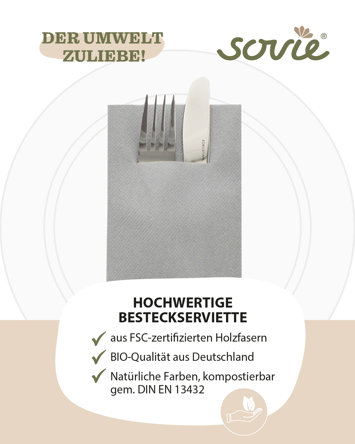 Die Besteckserviette GRAU aus Linclass® Airlaid bringt moderne Eleganz und hochwertige Funktionalität auf Ihren Tisch. Mit ihrer stilvollen grauen Farbe eignet sich diese Serviette perfekt für eine Vielzahl von Anlässen, von gehobenen Dinnerpartys bis hin zu professionellen Veranstaltungen. Die großzügige Größe von 40 x 40 cm bietet ausreichend Platz für die ansprechende Präsentation von Besteck und verleiht jeder Tafel einen Hauch von Raffinesse. Hergestellt aus dem hochwertigen Linclass® Airlaid-Material, fühlt sich die Serviette stoffähnlich an und bietet gleichzeitig die praktischen Vorteile einer Einwegserviette.