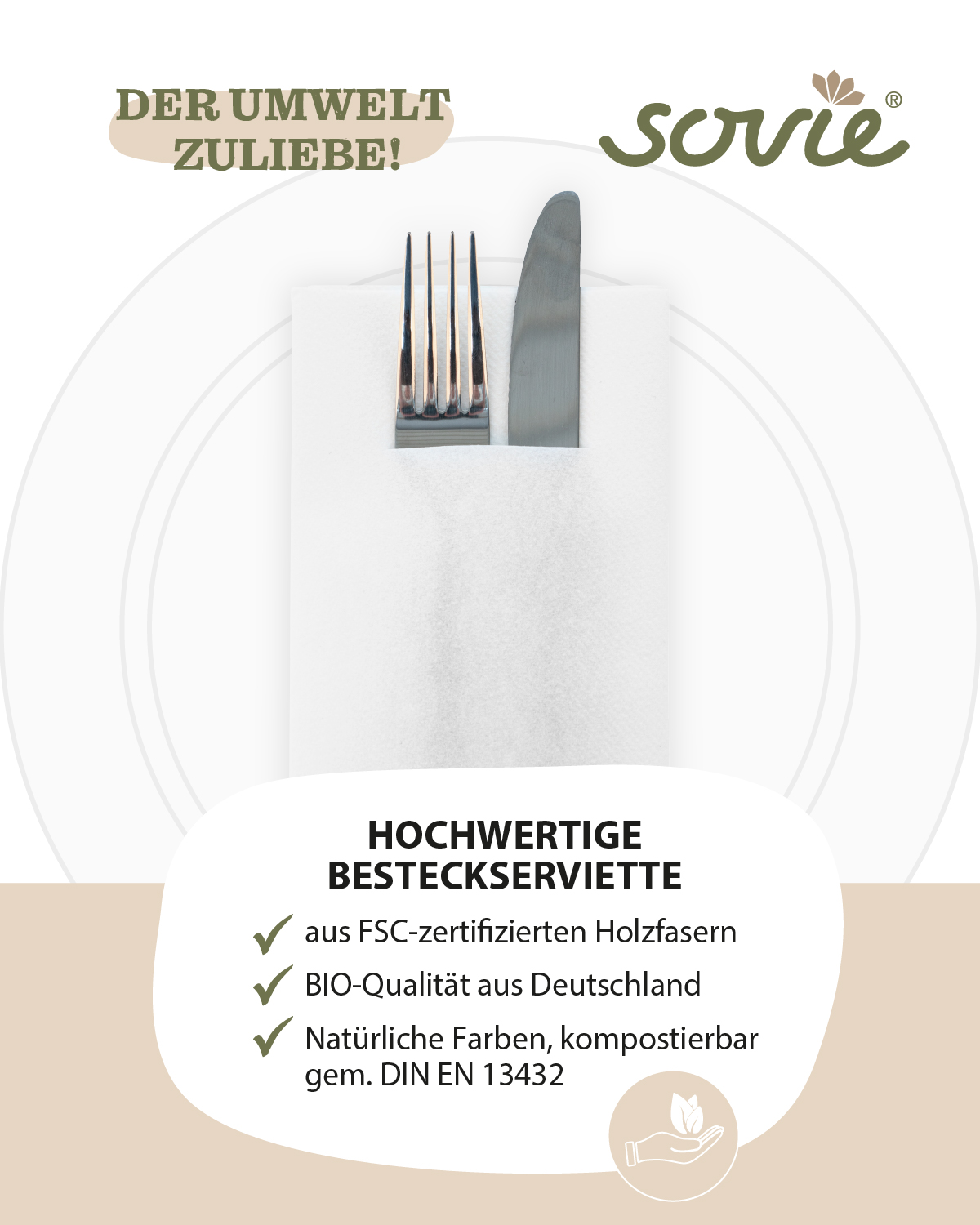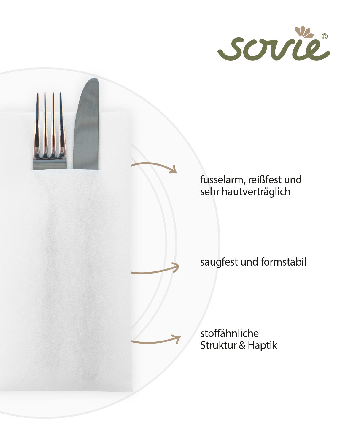 Mit einer Größe von 40 x 40 cm und einem praktischen 1/8-Falz eignet sich die Serviette ideal für eine stilvolle Besteckpräsentation. Das Linclass® Airlaid-Material überzeugt durch seine hohe Saugfähigkeit, Reißfestigkeit und stoffähnliche Haptik. Die weiche, textile Struktur sorgt für ein luxuriöses Gefühl und verleiht jeder Tischdekoration eine edle Ausstrahlung.