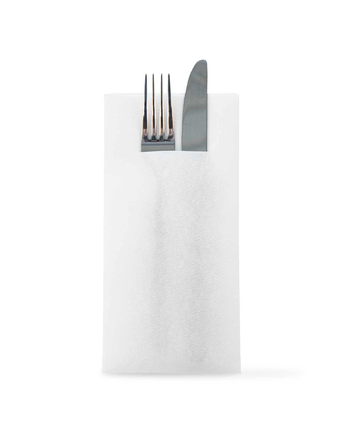 Papierbestecktaschen in Weiß mit Tissue-Serviette in Weiß, 20 cm x 8,5 cm - 100 Stück