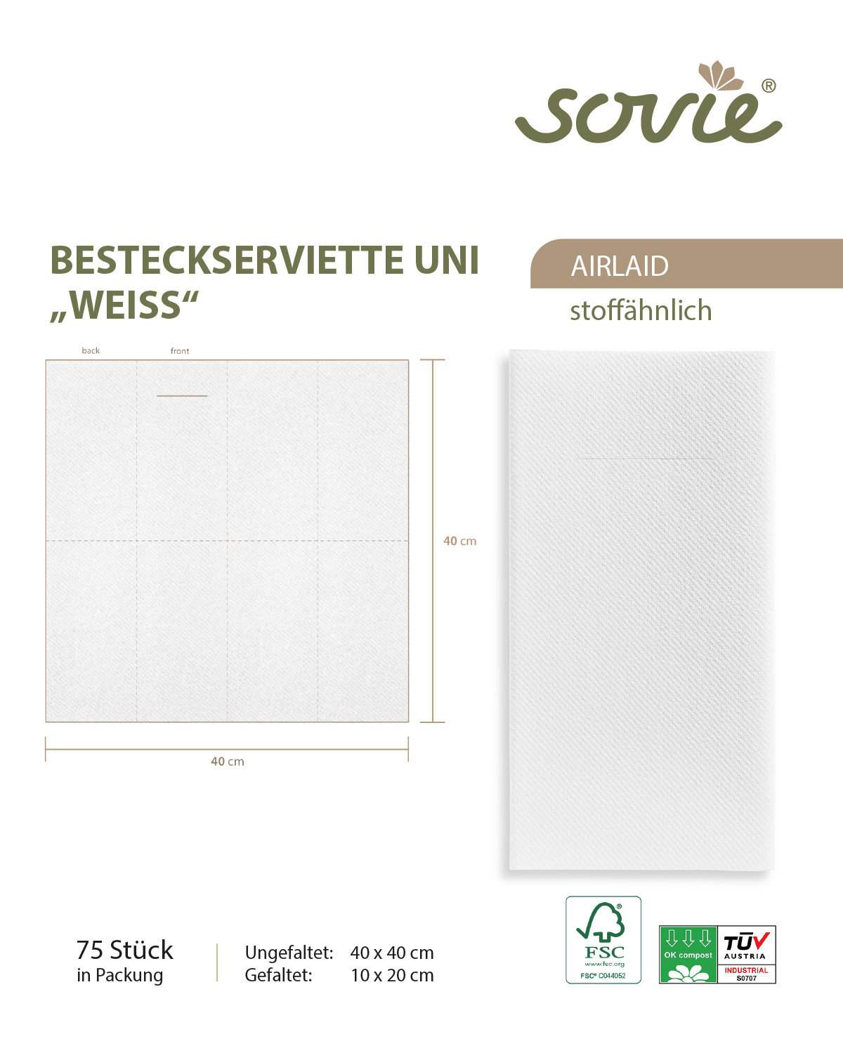 Besteckserviette in Weiß aus Linclass® Airlaid 40 x 40 cm, 4 x 75 Stück