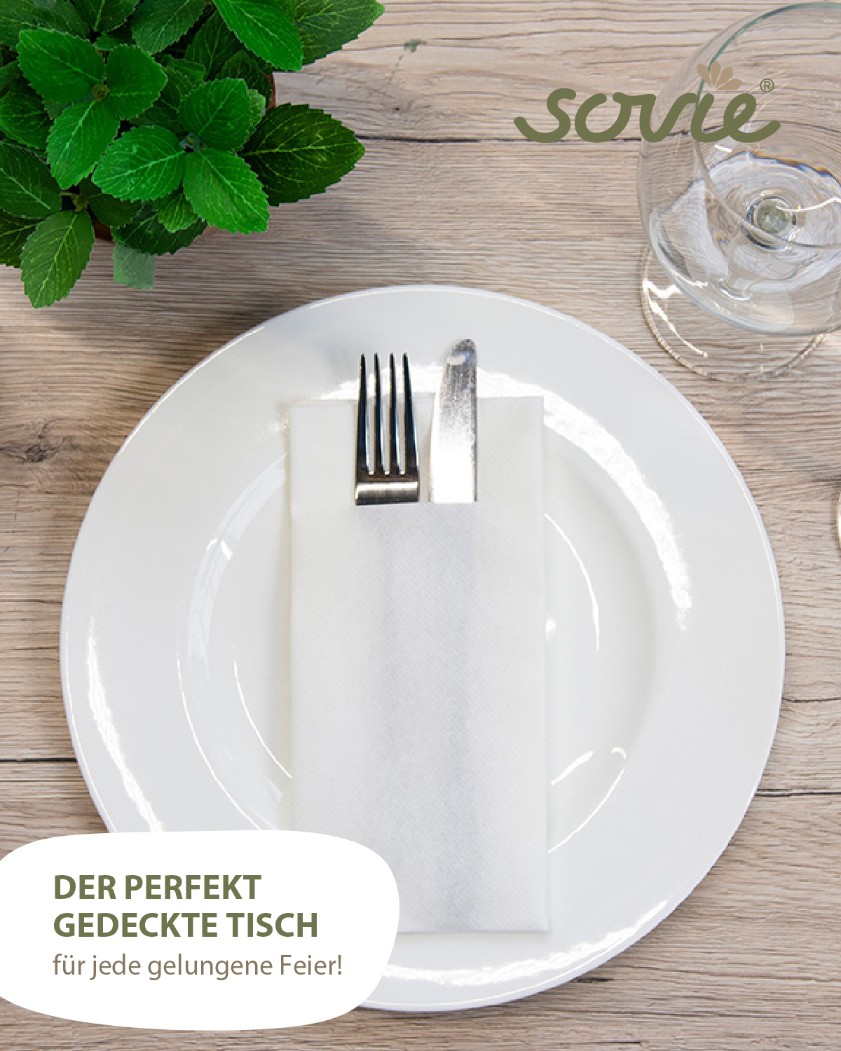 Verleihe deinem Tischarrangement mit der Besteckserviette in WEIß aus Linclass® Airlaid eine klassische und elegante Note. Der strahlende WEIß-Ton sorgt für eine frische, saubere Atmosphäre und ist die perfekte Wahl für gehobene Gastronomie, Hochzeiten oder festliche Anlässe. Diese Serviette kombiniert die edle Optik von Stoff mit der praktischen Handhabung eines hochwertigen Einwegprodukts und bringt Stil und Funktionalität zusammen.
