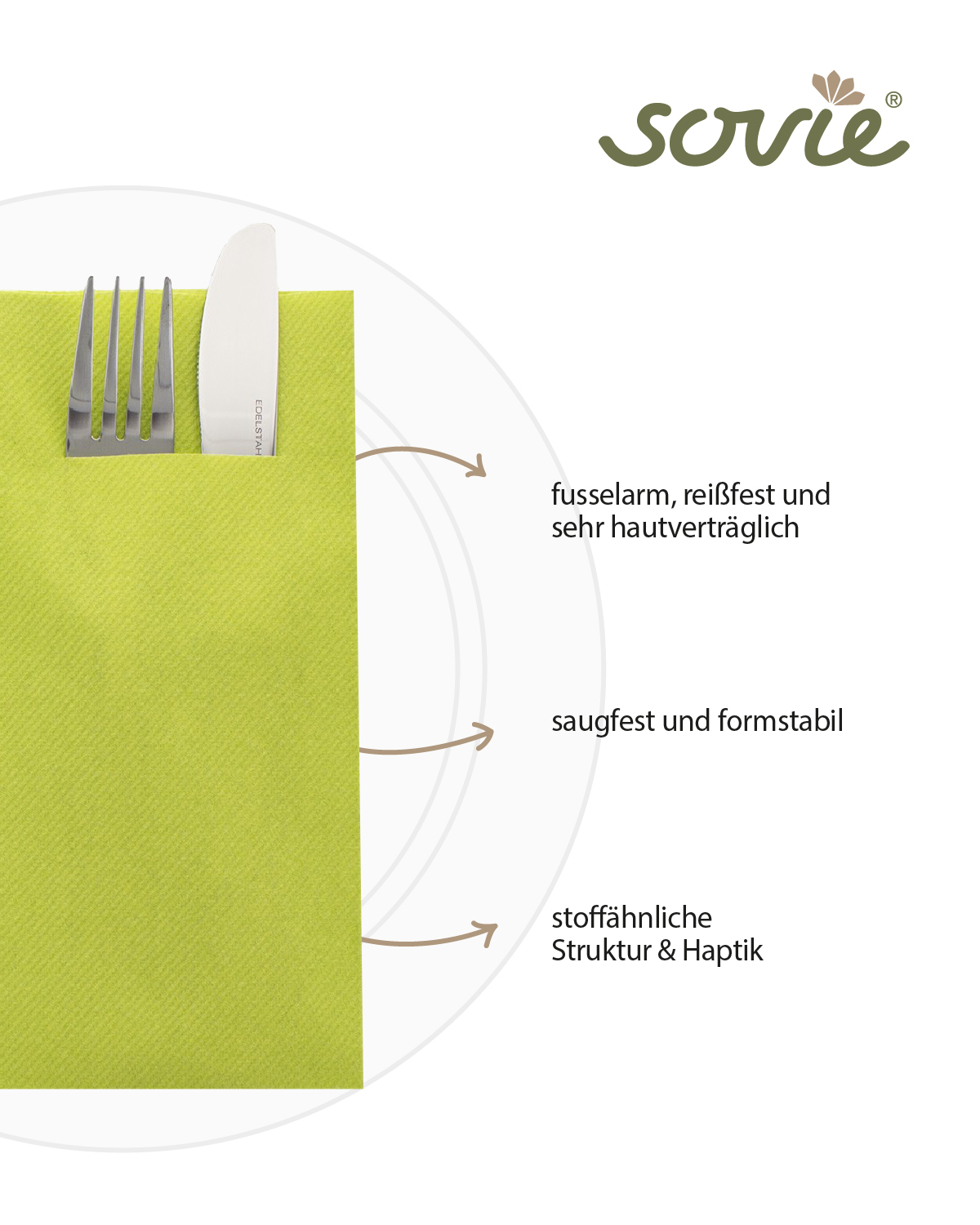 Mit einem Set von 12 Stück eignet sich die Besteckserviette in KIWIGRÜN perfekt für größere Feiern oder Veranstaltungen. Sie bietet eine stilvolle Möglichkeit, Ihre Gäste zu beeindrucken und verleiht jedem Tischarrangement eine frische, ansprechende Optik. Setzen Sie auf diese elegante Serviette in Kiwigrün und sorgen Sie für eine unvergessliche Atmosphäre bei Ihrem nächsten Event oder Dinner.