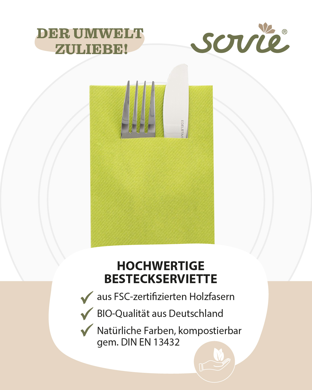 Die Besteckserviette in KIWIGRÜN aus Linclass® Airlaid kombiniert edles Design mit hervorragender Funktionalität. Dank ihrer stoffähnlichen Haptik fühlt sie sich besonders weich an und bietet ein luxuriöses Nutzungserlebnis. Die frische KIWIGRÜN-Farbe setzt lebendige Akzente und sorgt für eine ansprechende Tischdekoration – ideal für Restaurants, Hotels, Events oder Feierlichkeiten.