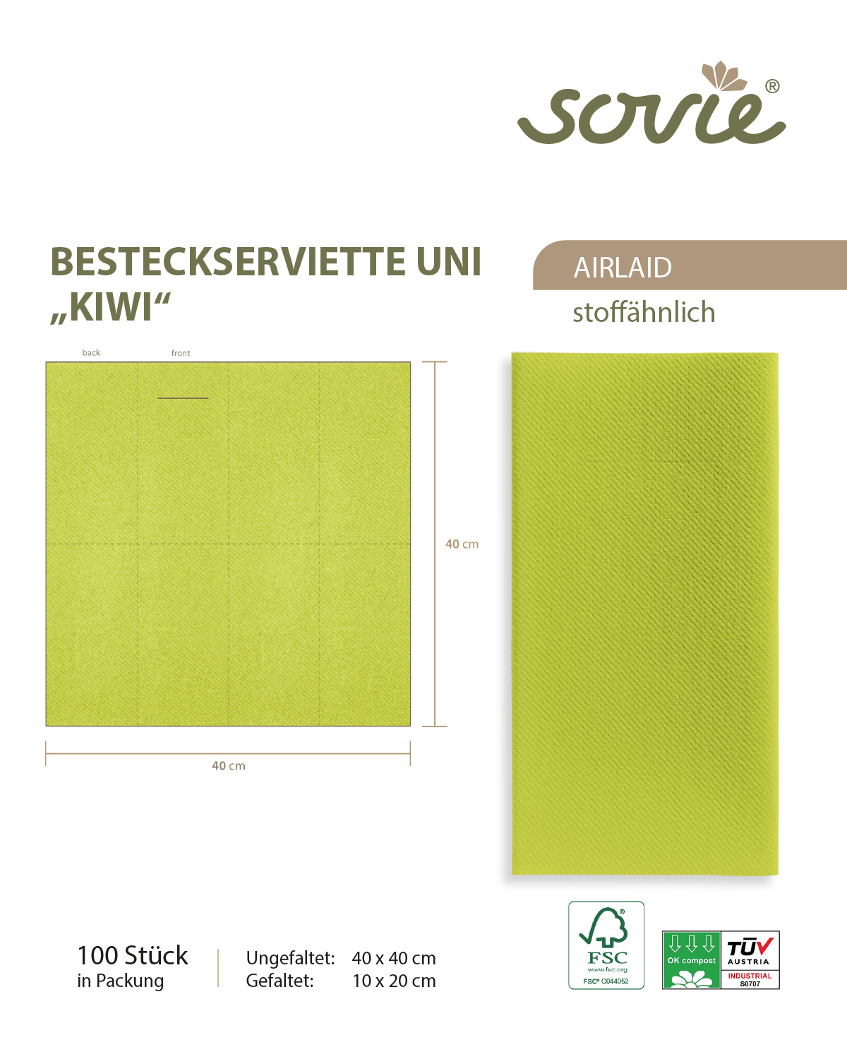 Besteckserviette Kiwi aus Linclass® Airlaid 40 x 40 cm, 100 Stück