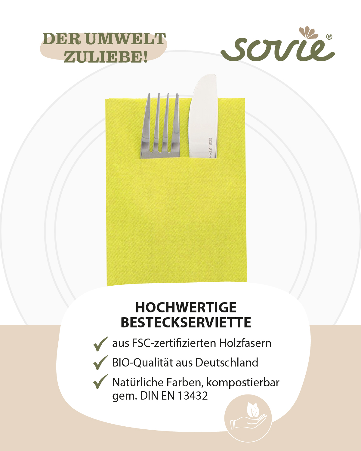Erhältlich im praktischen 75er-Pack, sind diese Besteckservietten die perfekte Wahl für Restaurants, Catering-Services oder besondere Feiern. Die strahlende LIMEGRÜN-Farbe lässt sich wunderbar mit weißen, silbernen oder floralen Dekorationen kombinieren und sorgt für ein frisches und modernes Ambiente. Setze auf Qualität und Stil mit diesen Premium-Airlaid-Servietten!