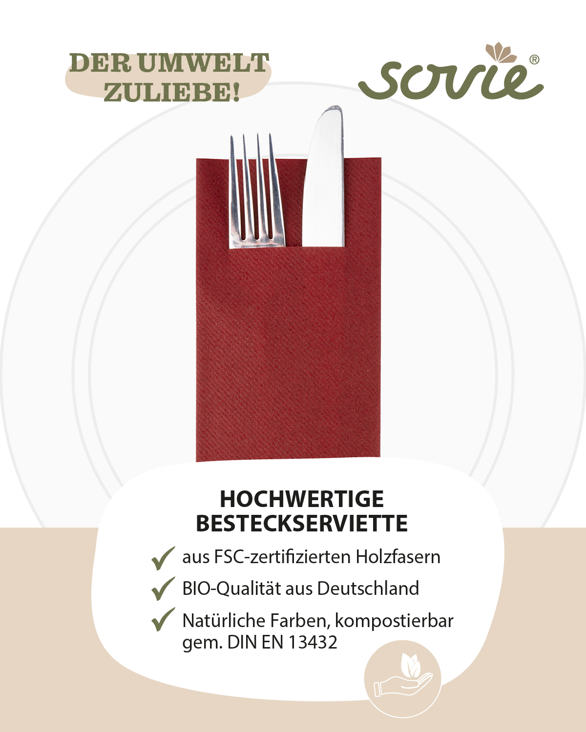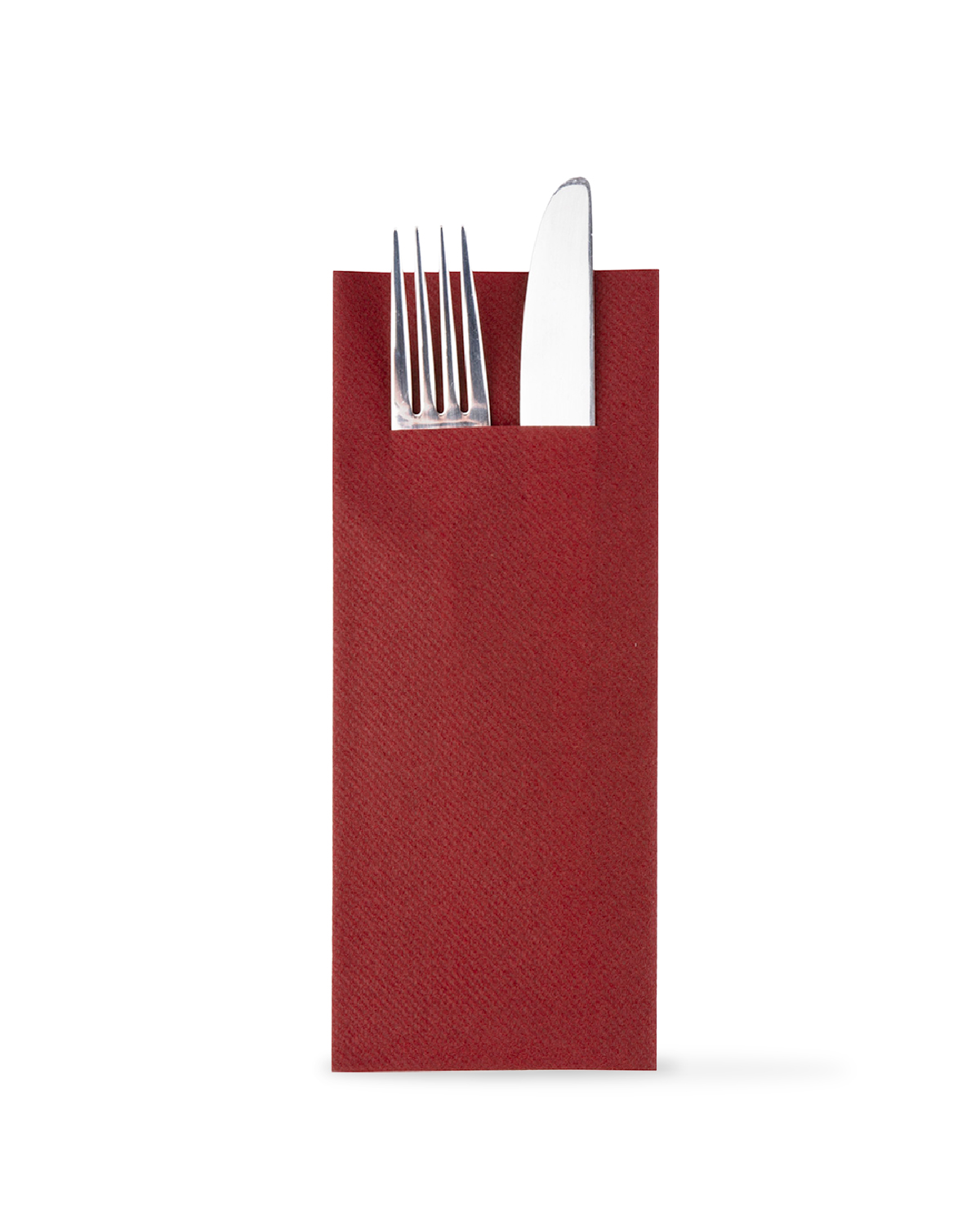 Papierbestecktaschen in Bordeaux mit Tissue-Serviette in Weiß, 20 cm x 8,5 cm - 100 Stück