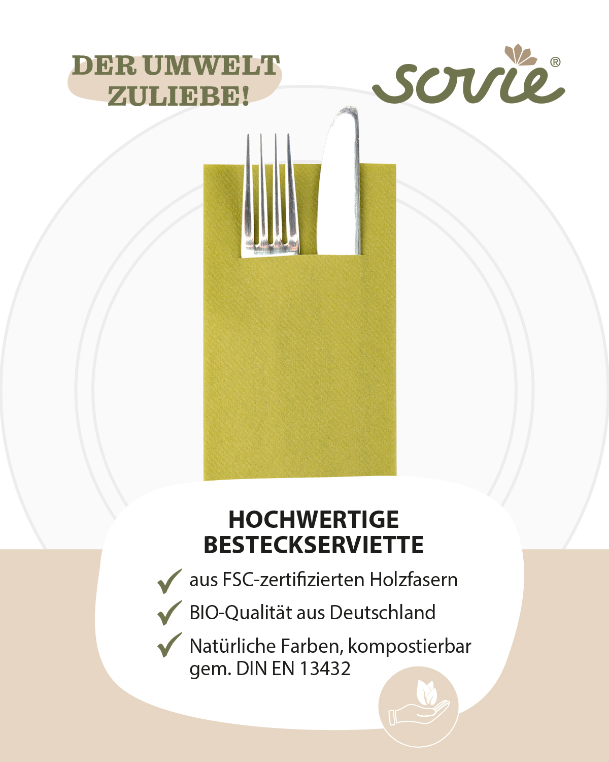 Besteckserviette Kiwi aus Linclass® Airlaid 40 x 40 cm, 1/8 Falz, 75 Stück