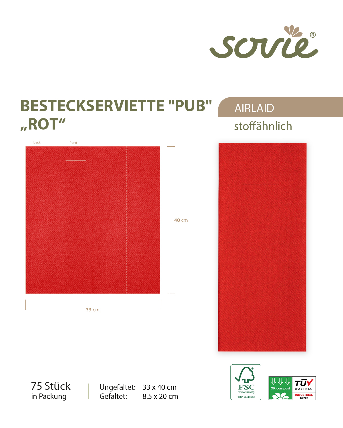 - Verpackung: 75 Servietten/Packung