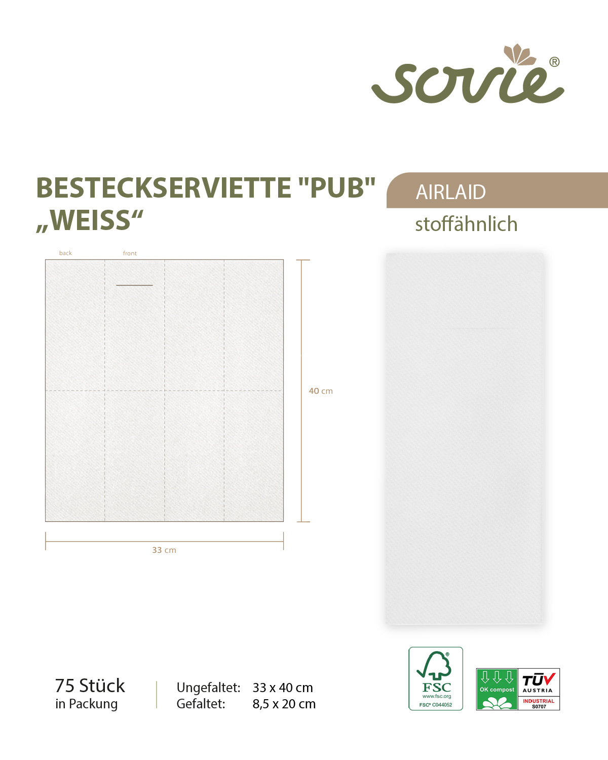 Besteckserviette Softpoint "Pub" in Weiß, 40 x 33 cm, 1/8 Falz, 50 Stück