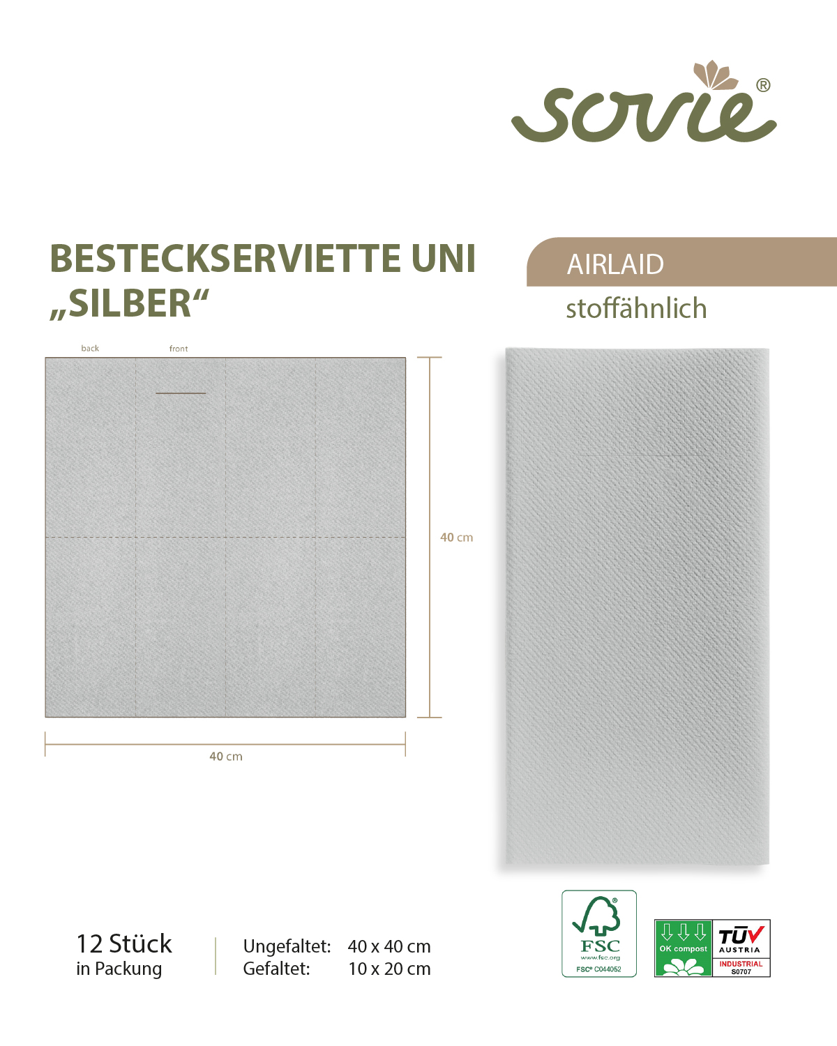 Serviette Silber aus Linclass® Airlaid 40 x 40 cm, 12 Stück