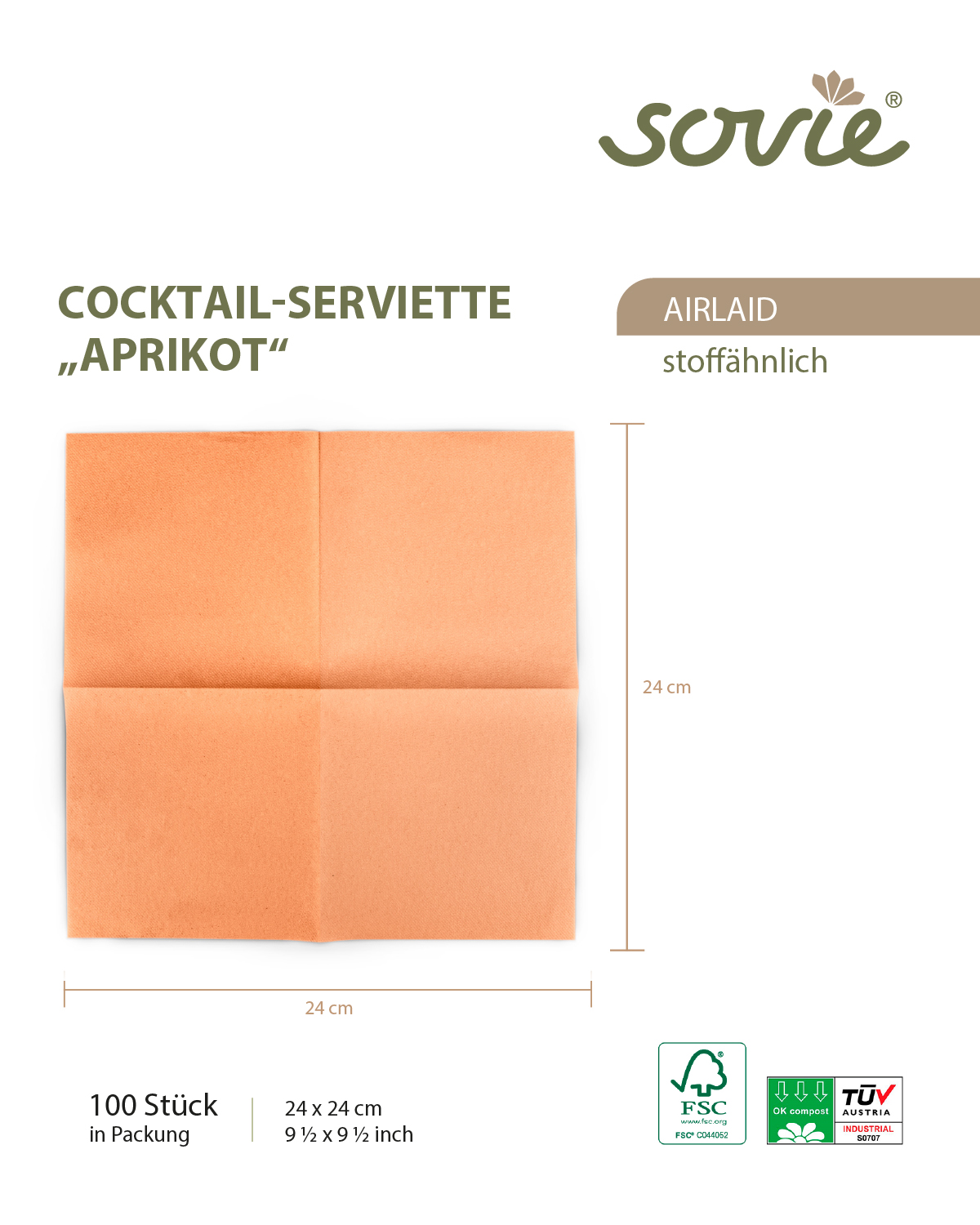 - Verpackung: 100 Servietten / Packung