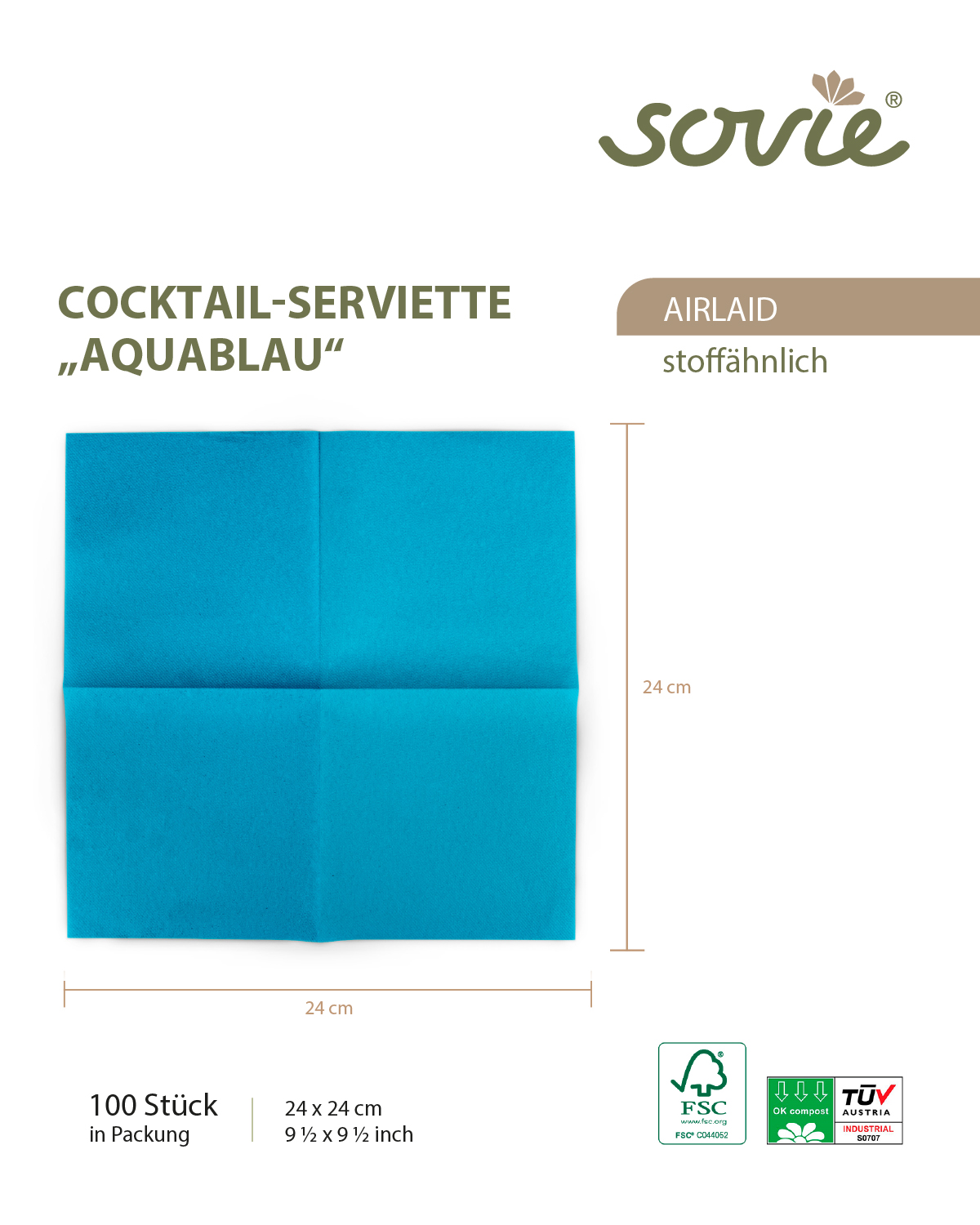 Cocktail-Servietten Aquablau aus Linclass® Airlaid 25 x 25 cm, 50 Stück