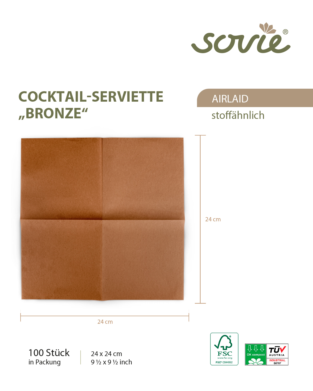 Cocktail-Servietten Braun aus Linclass® Airlaid 24 x 24 cm, 100 Stück