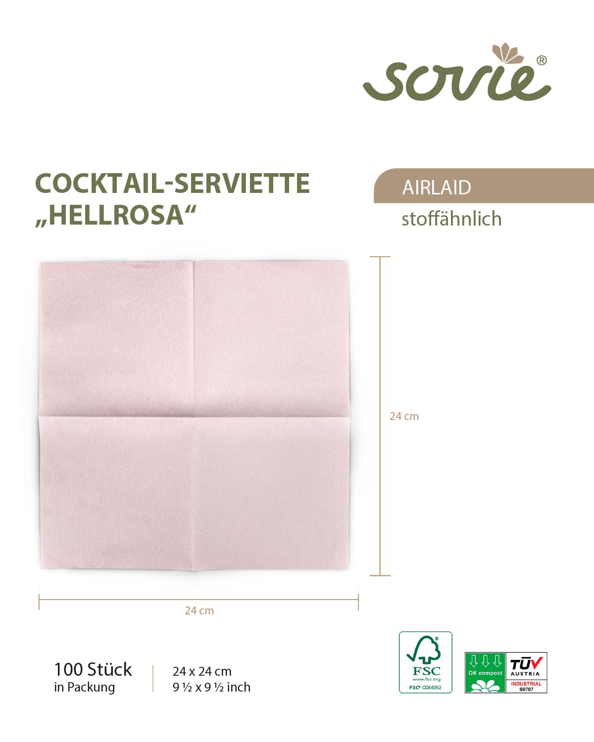 Cocktail-Servietten Rosa aus Linclass® Airlaid 24 x 24 cm, 100 Stück