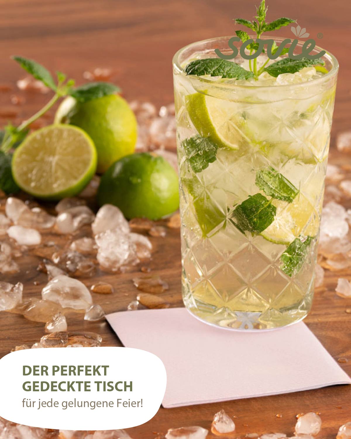 Besonders gut eignet sich diese Cocktail Servietten als Untersetzer für Drinks oder als Tellerersatz für Ihr Fingerfood. Die praktischen, zu 100 Stück verpackten Einweg-Servietten mit ¼-Faltbarkeit lassen sich leicht präparieren und können anschließend bequem entsorgt werden. Sie weisen eine hochwertige stoffähnliche Struktur auf und wirken dadurch nicht nur optisch wie Stoffservietten, sondern vermitteln auch ein realistisches, stoffartiges Griffgefühl.