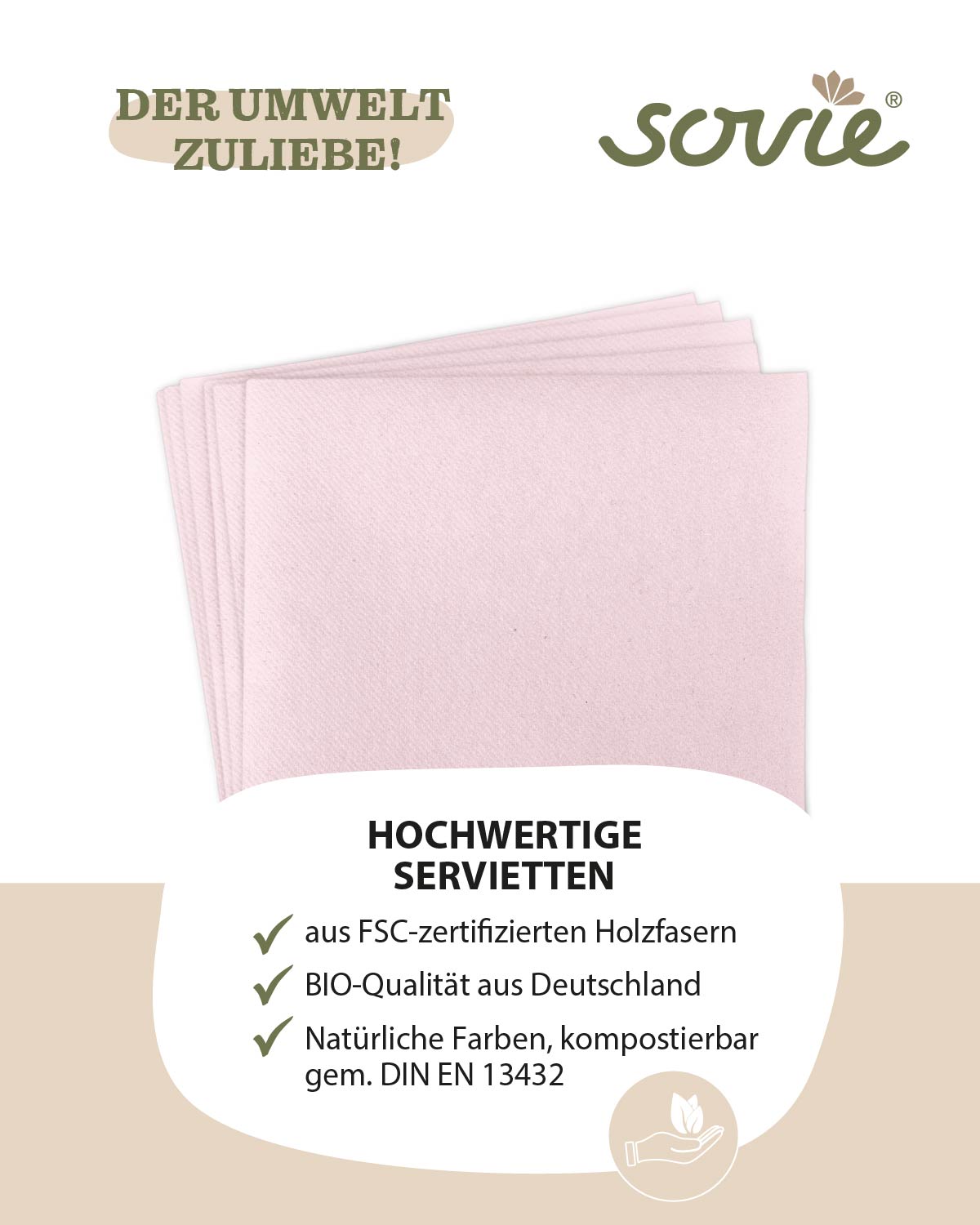 Reißfest, saugstark, formstabil. Unsere Einmalservietten sind nicht nur die ideale Alternative für die Ebenbilder aus Stoff, sondern sie stellen auch herkömmliche Papierservietten in den Schatten. Die in Deutschland hergestellten, festen Servietten sind strapazierfähig und weisen eine gute Faltbarkeit auf. Sie sind außerdem farbecht und wurden lebensmittelunbedenklich gefärbt.