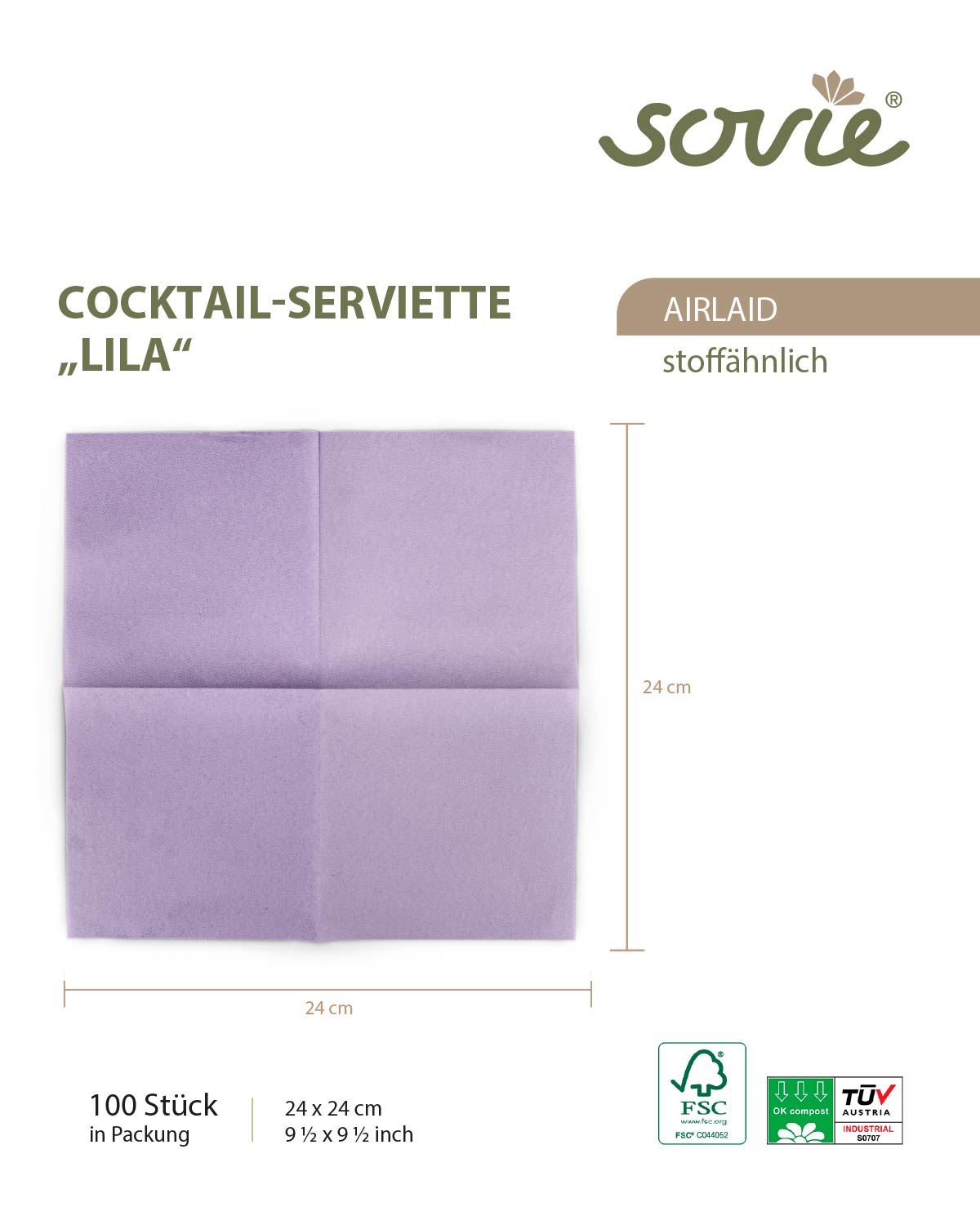 - Verpackung: 100 Servietten / Packung