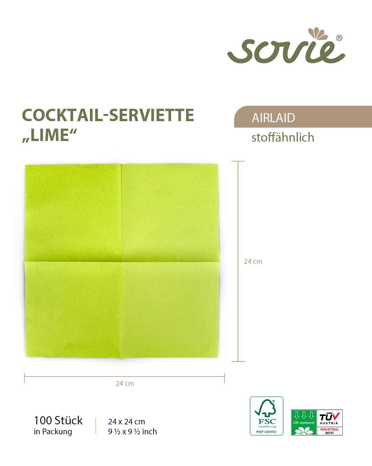 Cocktail-Servietten Kiwi aus Linclass® Airlaid 24 x 24 cm, 100 Stück