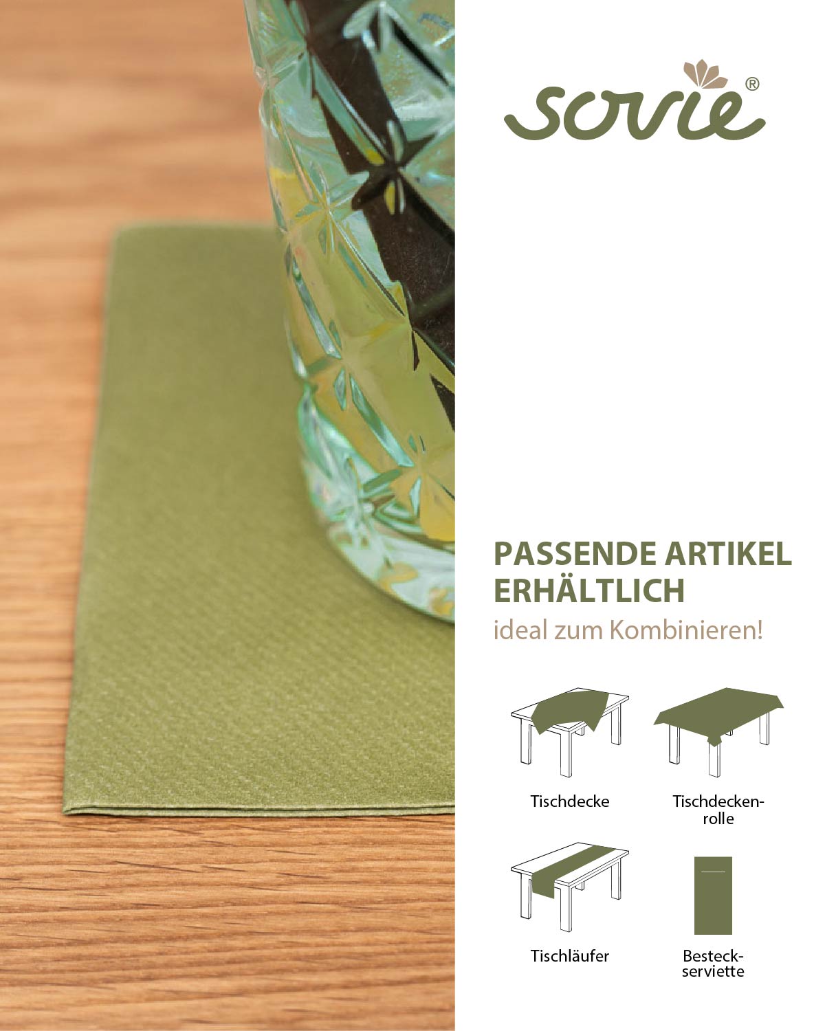Das i-Tüpfelchen der Tischdekoration. Mit Servietten der Farbe OLIV aus unserem unifarbenen Sortiment lassen sich individuelle Designträume verwirklichen und einzigartige Atmosphären erschaffen. Durch die Formstabilität lassen sie sich in beinahe jede Form bringen und avancieren so zum Star Ihrer Tischgestaltung. Kombinieren Sie unsere einfarbigen Servietten mit Produkten aus unserem umfangreichen Designprogramm! Unsere Tischprodukte in OLIV zeugen von einer Eleganz, die sich in dem edlen Farbton wiederspiegelt.