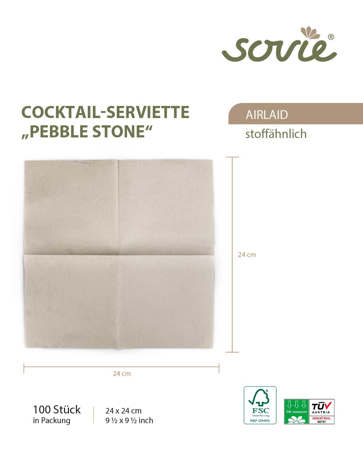 - Verpackung: 100 Servietten / Packung