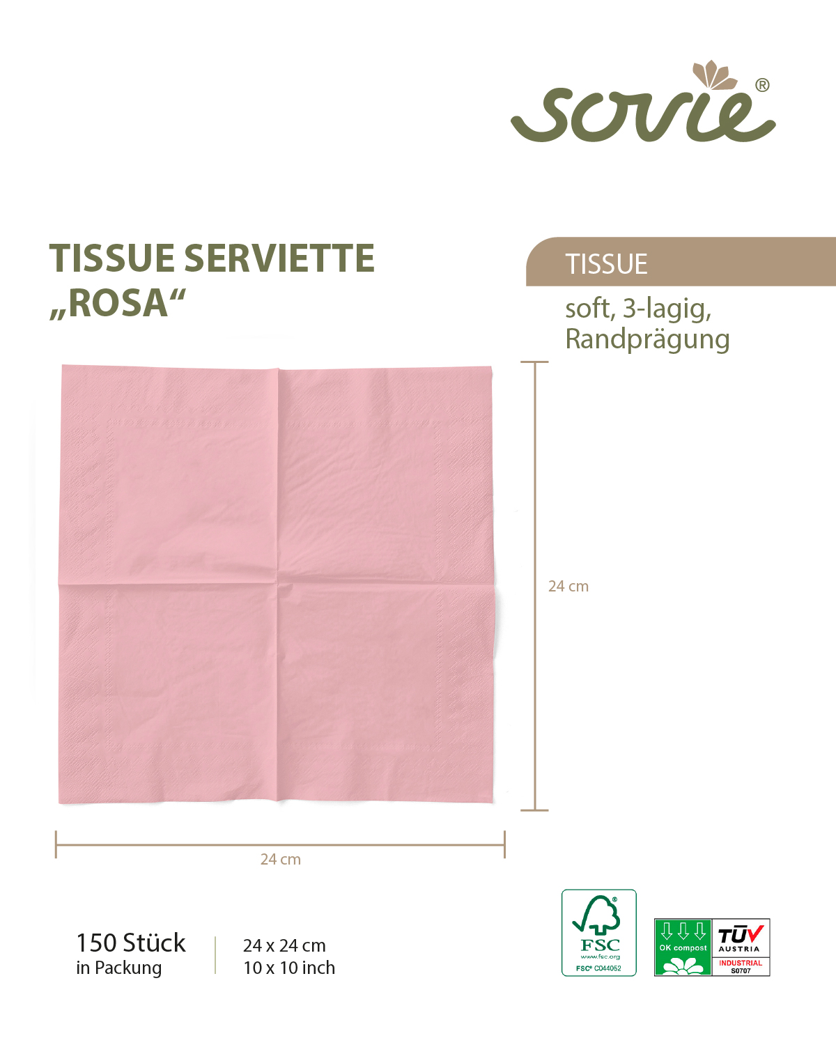 - Verpackung: 150 Servietten / Packung