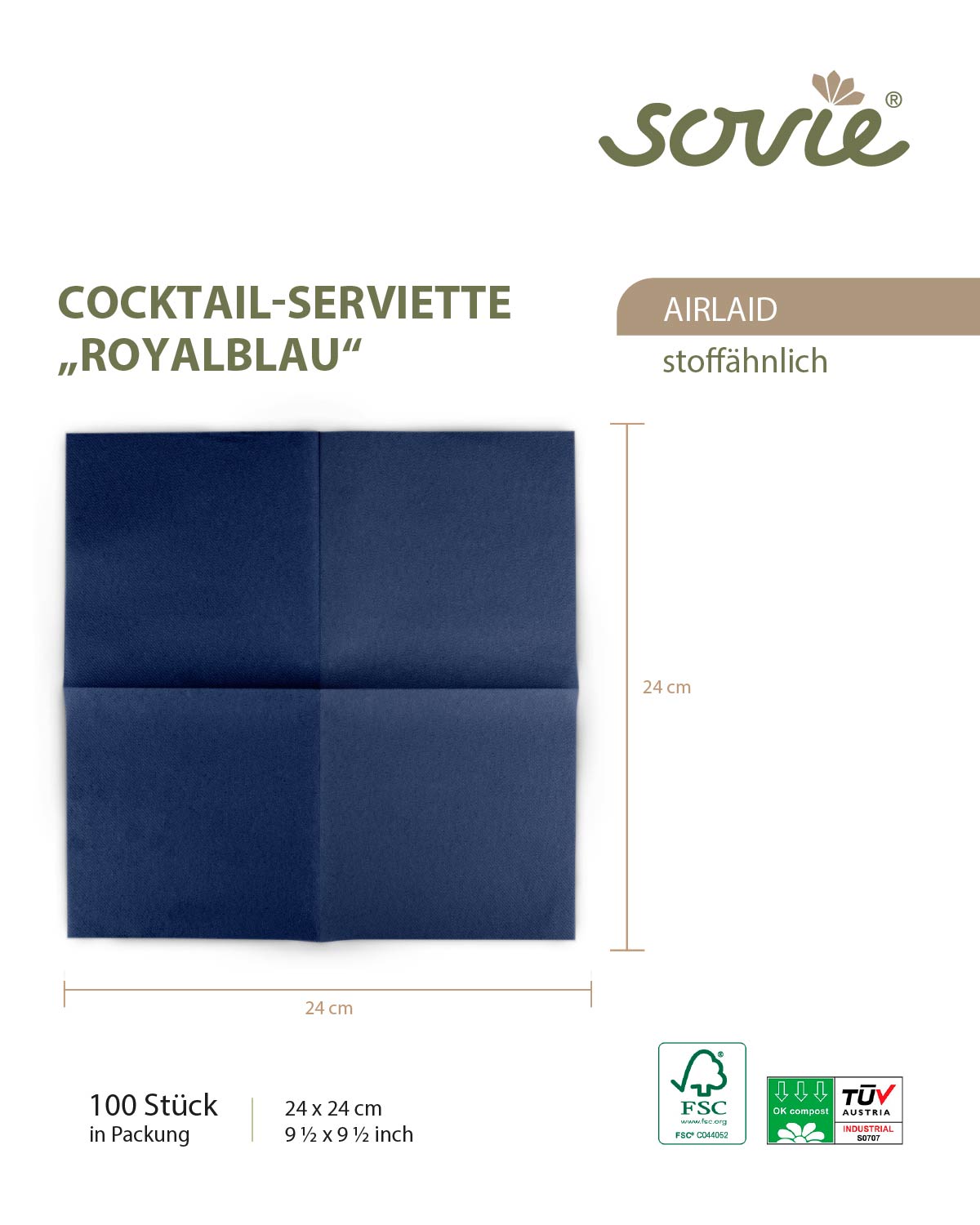 - Verpackung: 100 Servietten / Packung