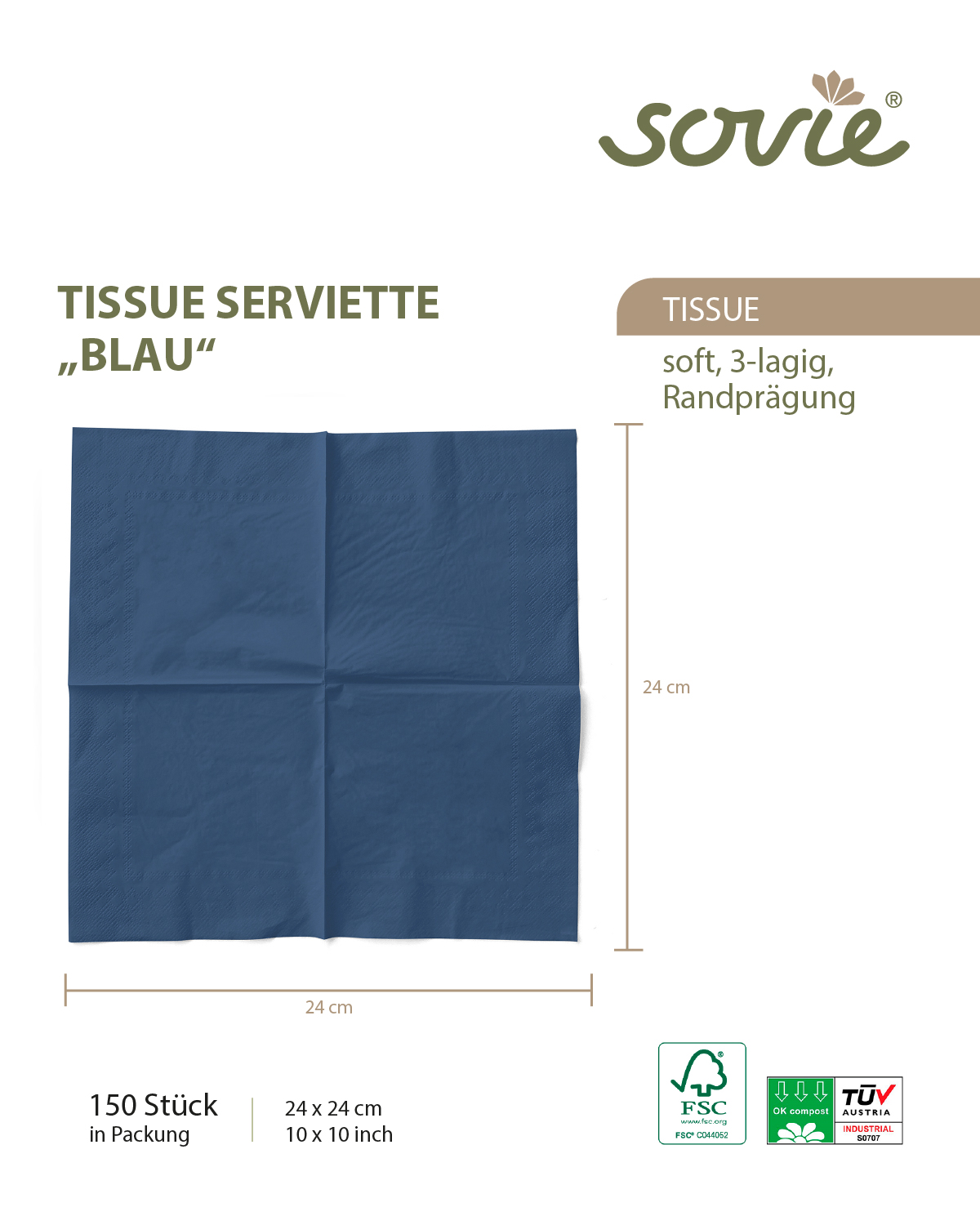 - Verpackung: 150 Servietten / Packung