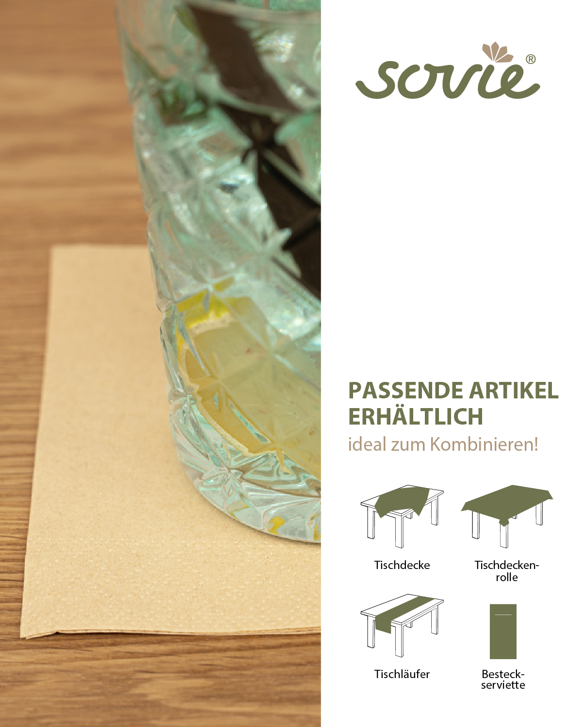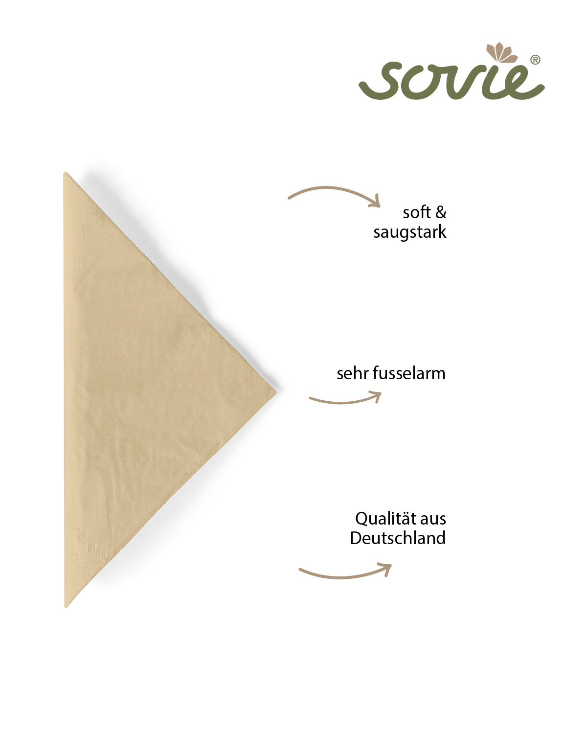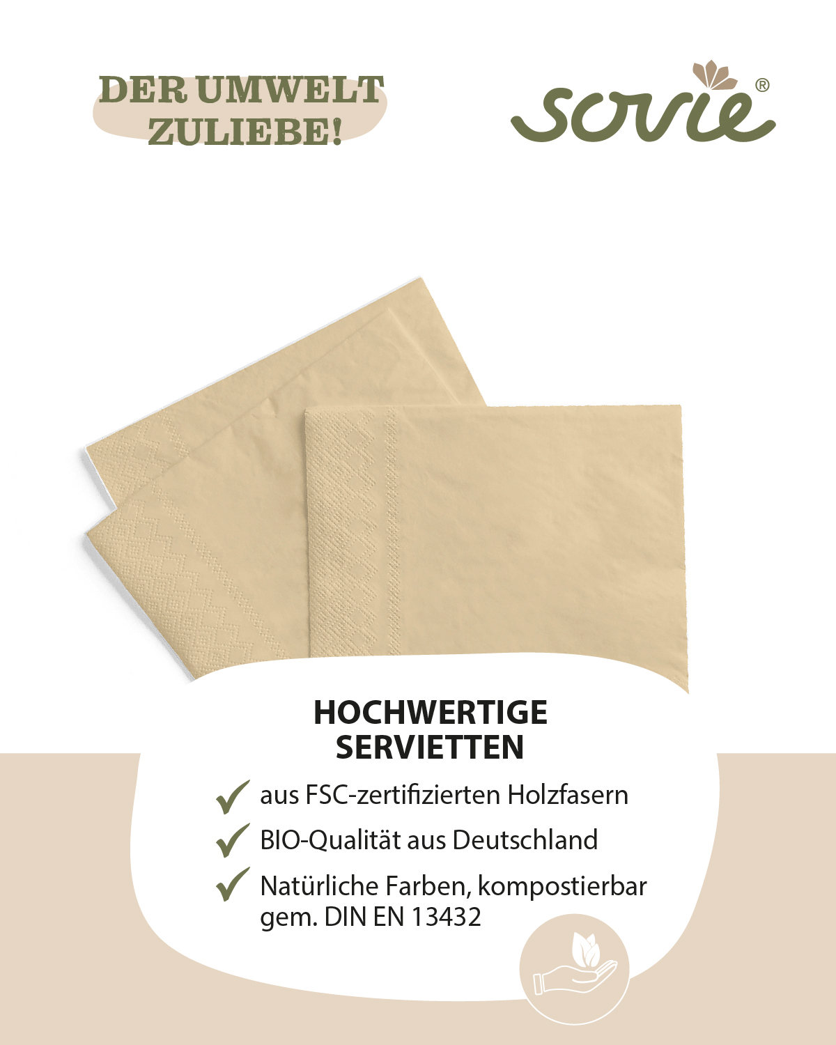 Die handliche Größe und der warme Sandton machen diese Servietten zu einer idealen Wahl für Cocktailempfänge, Picknicks oder Gartenpartys. Sie sind eine einfache Möglichkeit, Ihre Getränke stilvoll zu präsentieren und gleichzeitig für Sauberkeit und Ordnung zu sorgen.