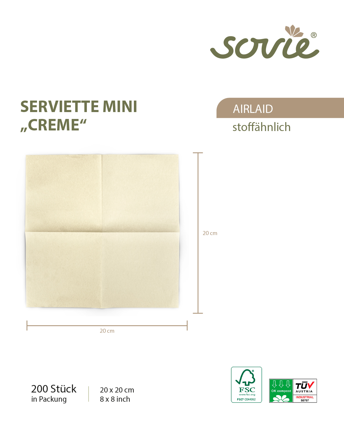 - Verpackung: 200 Servietten / Packung