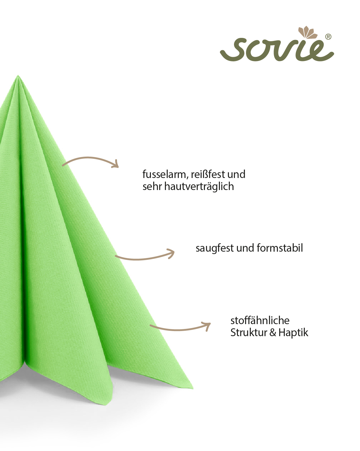 Die Packung enthält 12 Stück, was sie zu einer praktischen Lösung für kleinere Veranstaltungen oder als stilvolle Ergänzung für Ihre Tischdekoration zuhause macht. Die leuchtende Farbe APFELGRÜN in Kombination mit dem hochwertigen Linclass® Airlaid-Material sorgt für eine fröhliche und moderne Tischgestaltung, die jedes Event aufwertet.