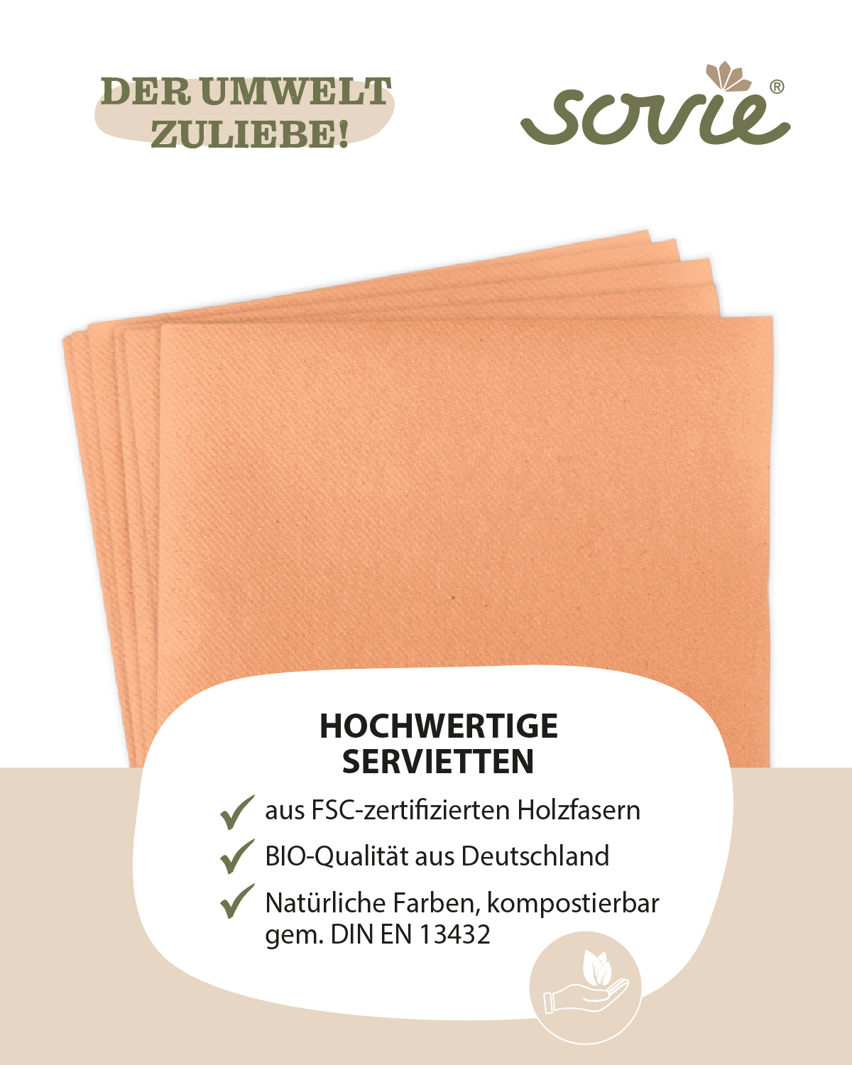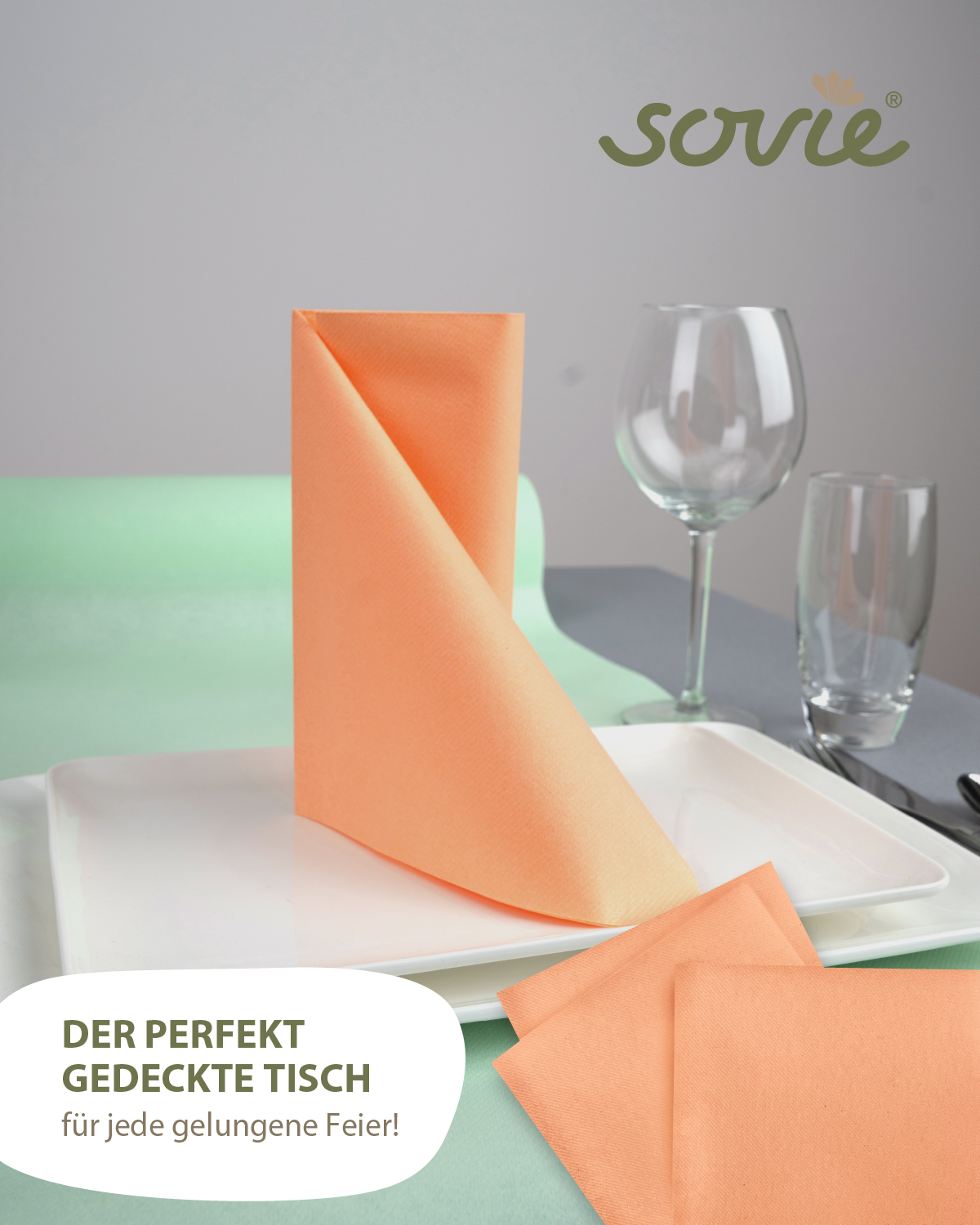 Mit der praktischen 1/4 Falz-Form lässt sich diese Serviette mühelos entfalten und sorgt für eine gepflegte und stilvolle Präsentation bei jeder Veranstaltung. Ob bei einer romantischen Hochzeit, einem luxuriösen Dinner oder einer festlichen Feier, die Serviette in APRIKOT verleiht Ihrer Tischdekoration eine elegante Note und schafft eine unvergessliche, luxuriöse Atmosphäre, die Ihre Gäste beeindrucken wird.
