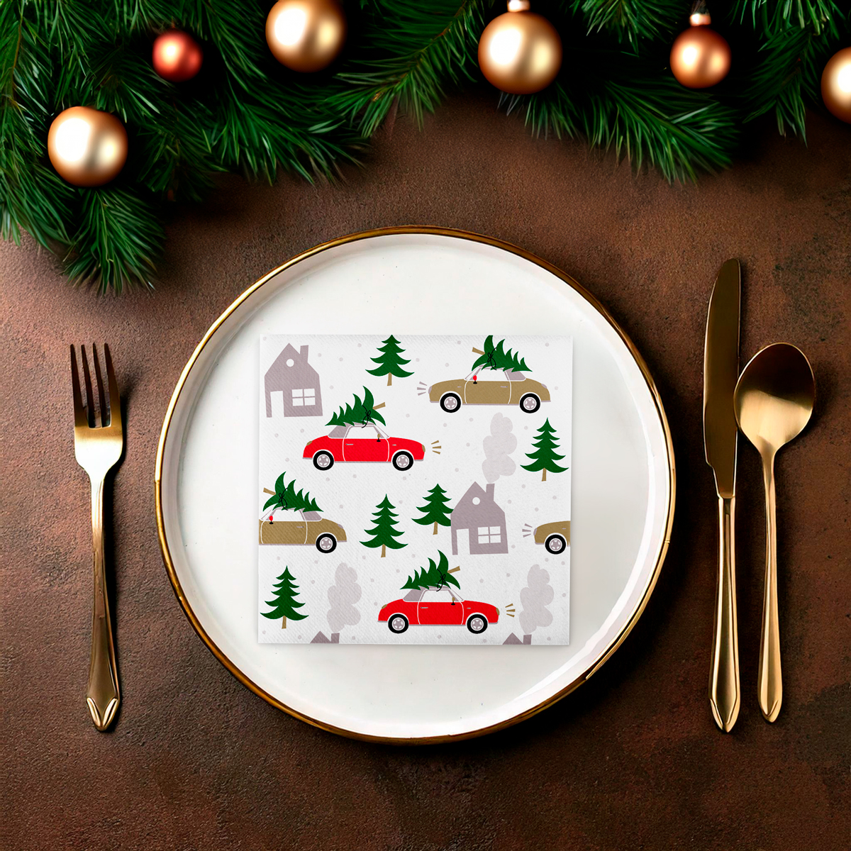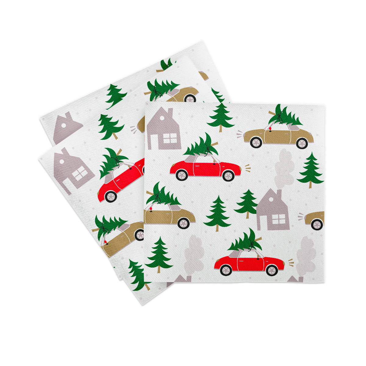 Die Sovie HOME Servietten CARS & TREES sind die perfekte Ergänzung für eine stimmungsvolle Weihnachtsdekoration. Das festliche Motiv zeigt Autos in Rot und Gold, die frisch geschlagene Tannenbäume transportieren und weihnachtliche Wärme in Ihre Tischgestaltung bringen. Ob Familienfeier, Adventsbrunch oder Abendessen im kleinen Rahmen – diese Servietten sorgen sofort für festliches Ambiente.