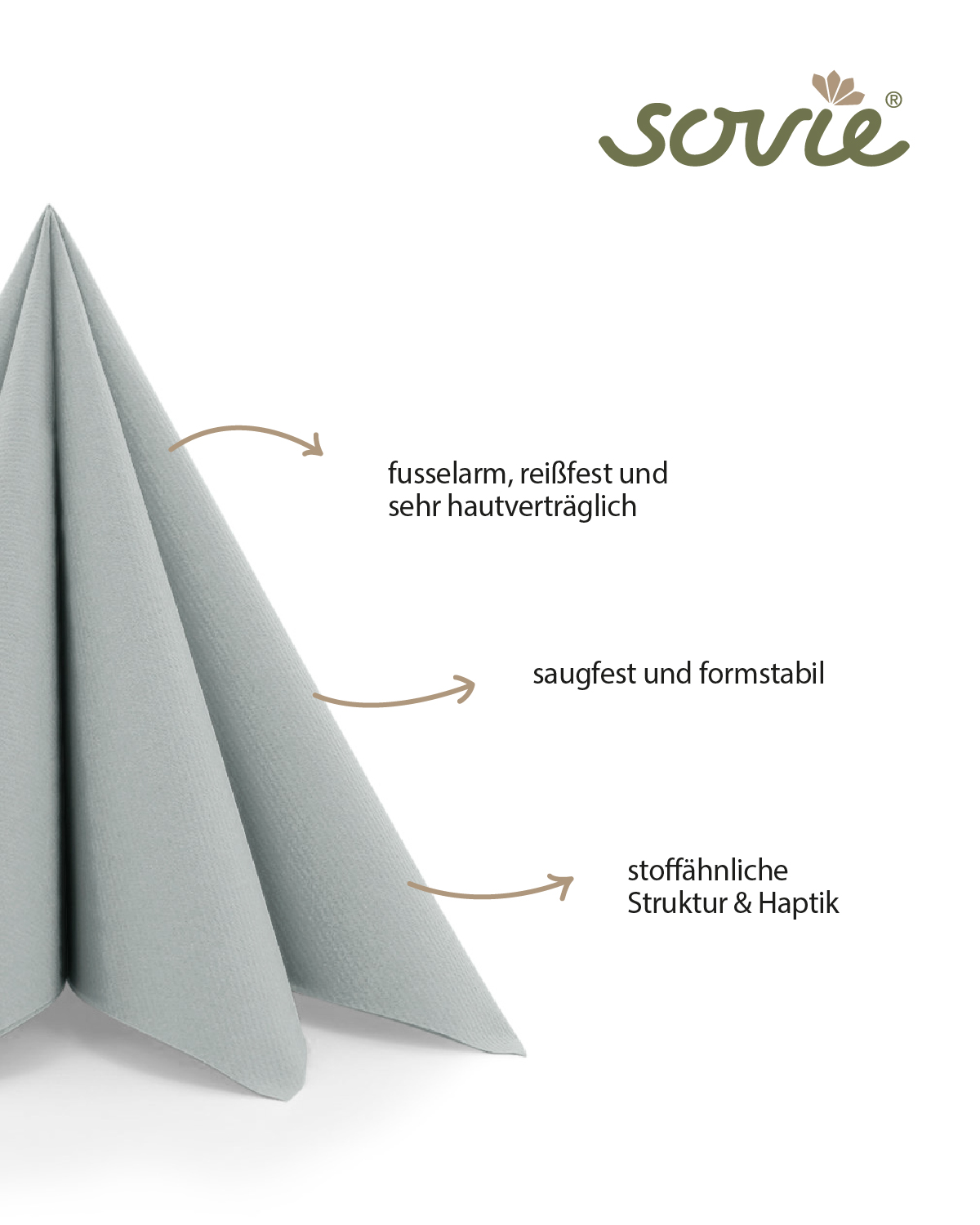 Hergestellt aus Linclass® Airlaid-Material, überzeugt die Serviette durch ihre besonders stoffähnliche Qualität, hohe Saugfähigkeit und angenehme Haptik. Im Gegensatz zu herkömmlichen Papierservietten ist Airlaid deutlich reißfester, weicher und optisch hochwertiger – perfekt für gehobene Ansprüche in Restaurants, Hotels oder bei Veranstaltungen.