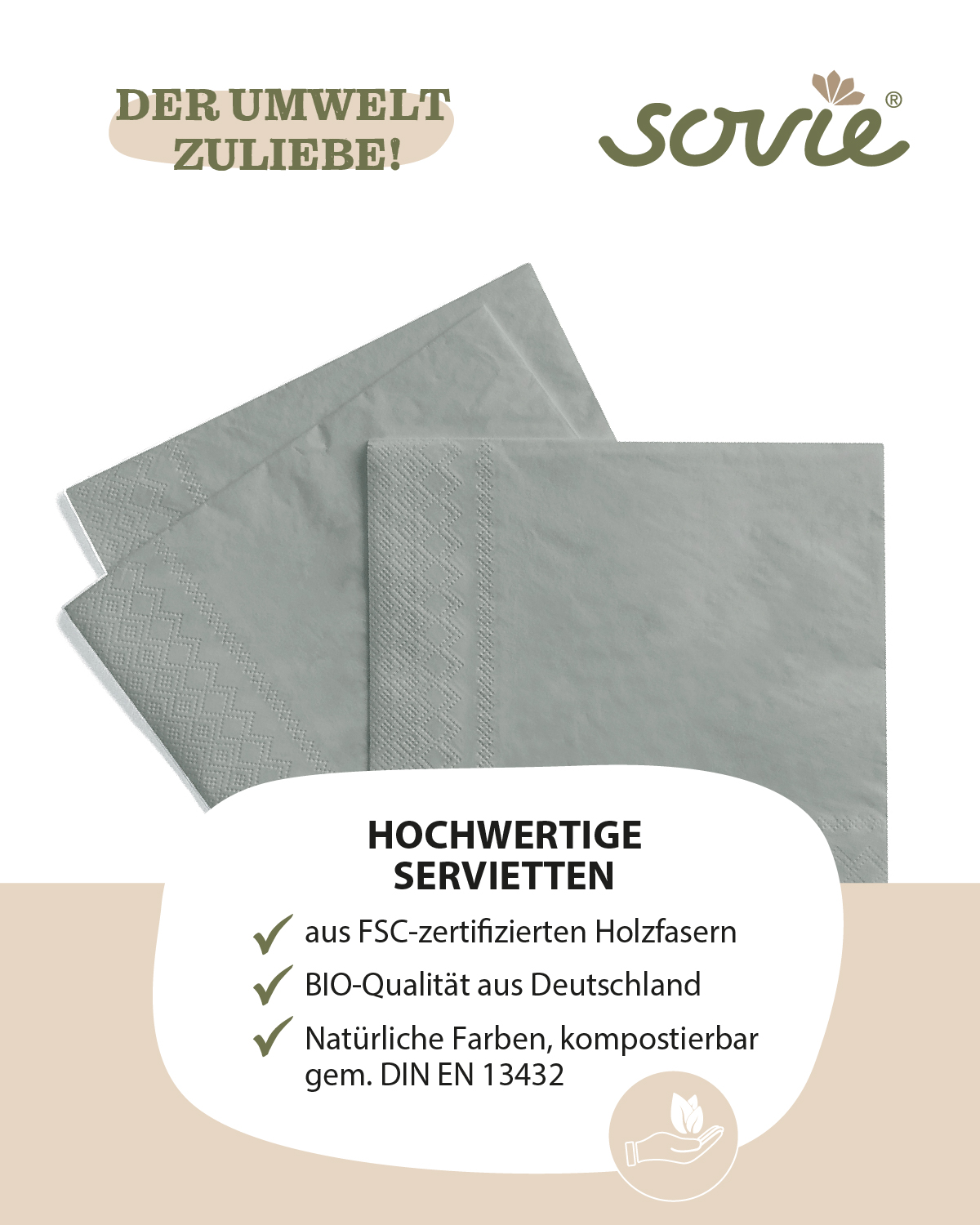 Dank der 3-lagigen Tissue-Qualität überzeugt die Serviette durch ihre hohe Saugfähigkeit, Weichheit und Stabilität. Sie ist robust und bleibt auch bei intensiver Nutzung formstabil. So bietet sie sowohl ästhetische Eleganz als auch praktische Funktionalität – ideal für den privaten Gebrauch oder den Einsatz in der Gastronomie.