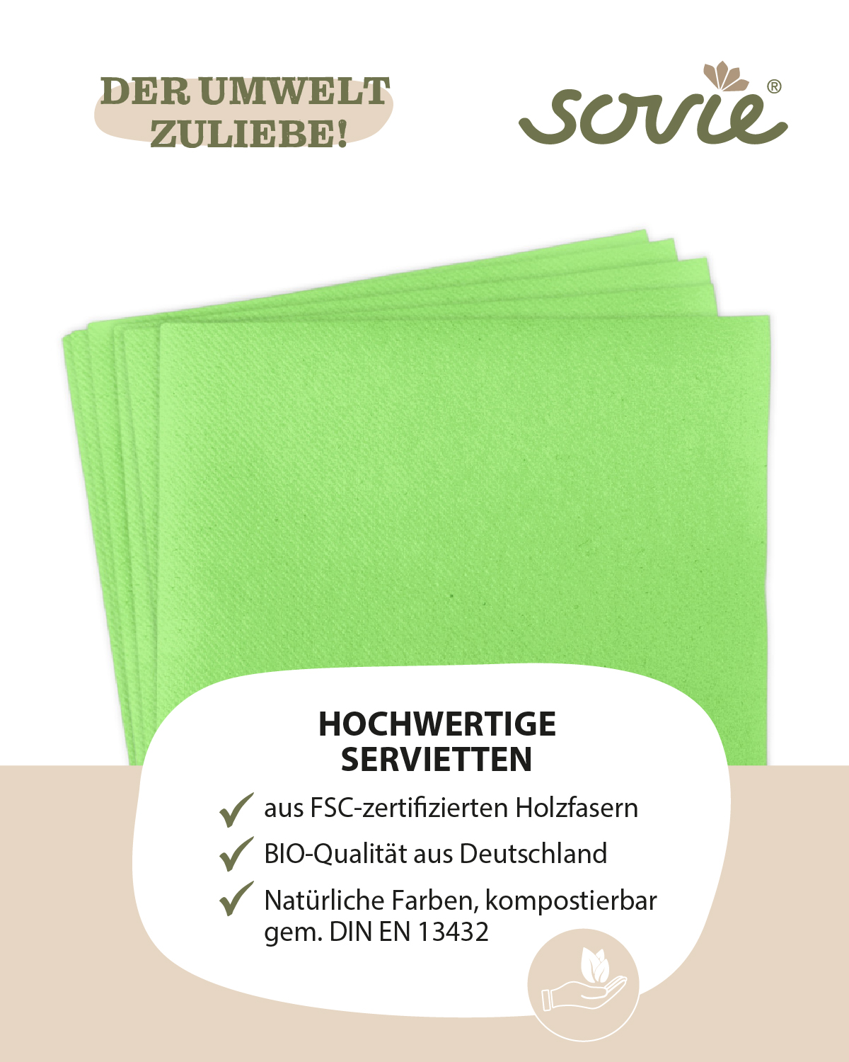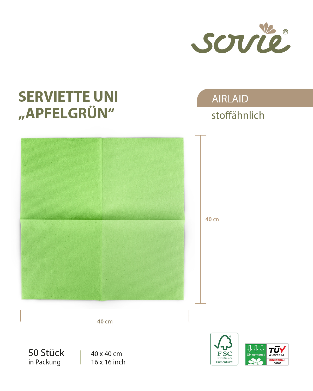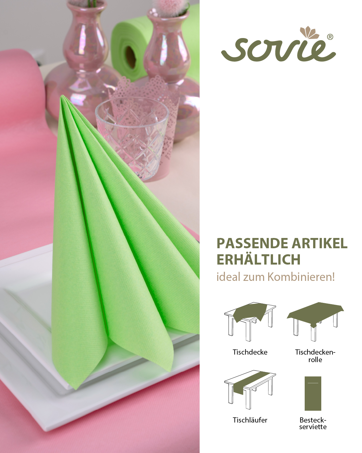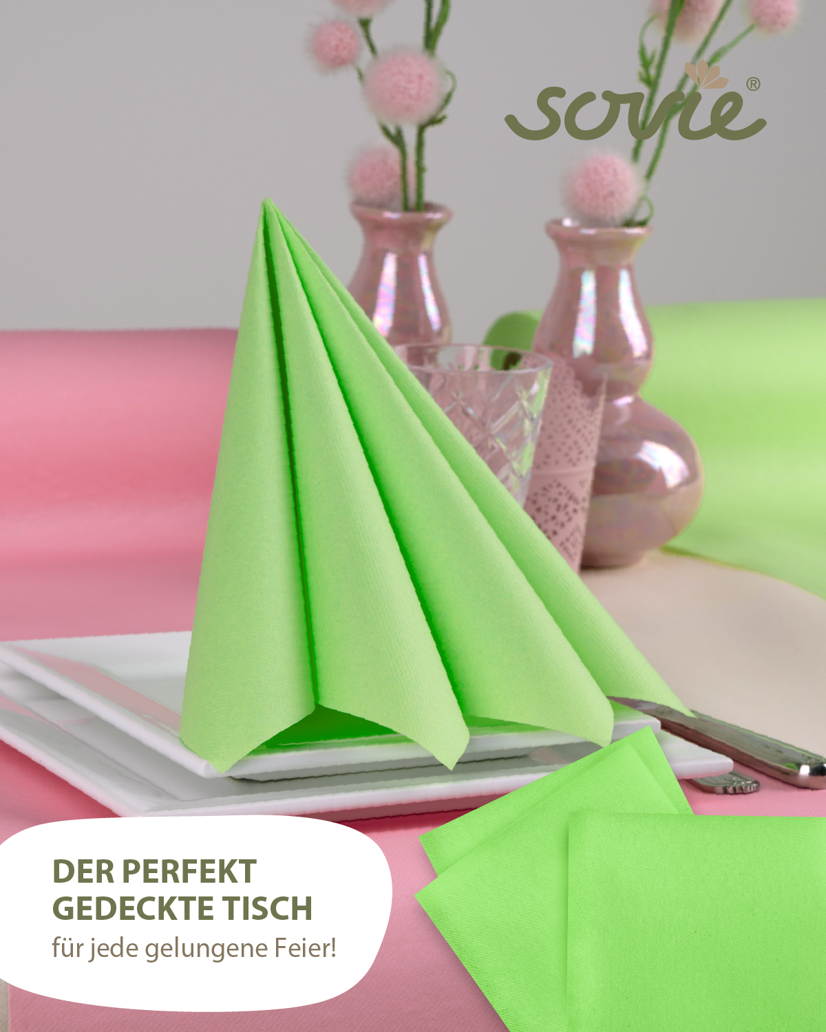 Mit der praktischen 1/4 Falz-Form lässt sich die Serviette mühelos entfalten und sorgt für eine gepflegte Präsentation bei jeder Feier. Ob bei einer fröhlichen Hochzeit, einem stilvollen Dinner oder einem festlichen Anlass, diese Serviette in APFELGRÜN wird Ihre Tischdekoration bereichern und für eine frische, luxuriöse Atmosphäre sorgen. Sie überzeugt sowohl durch ihr ansprechendes Design als auch durch ihre hohe Qualität und Funktionalität.