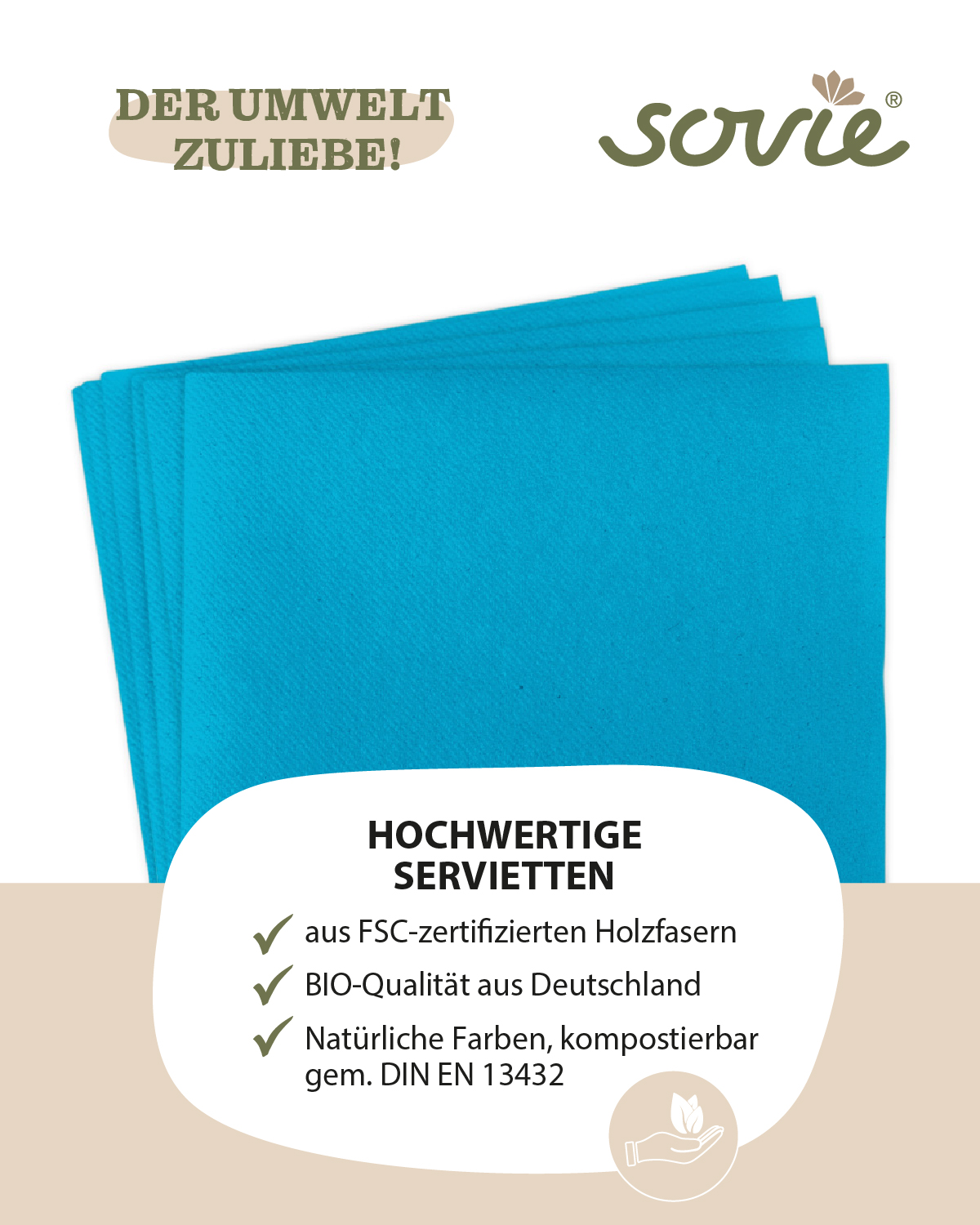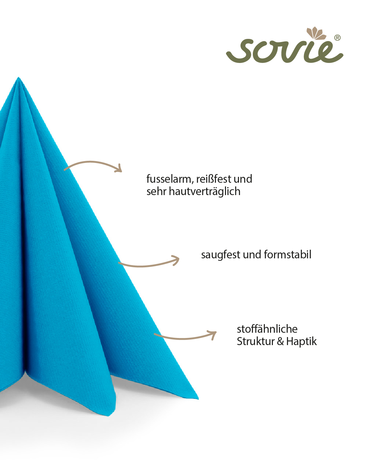 Serviette in Aquablau aus Tissue 3-lagig, 1/4 Falz, 33 x 33 cm, 100 Stück