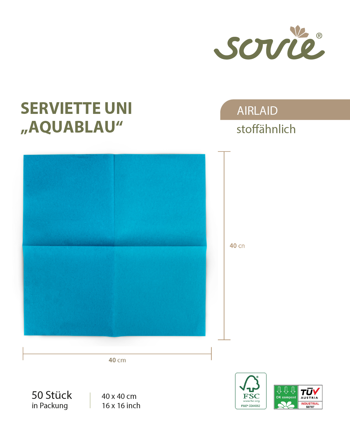 Serviette in Aquablau aus Linclass® Airlaid 40 x 40 cm, 50 Stück