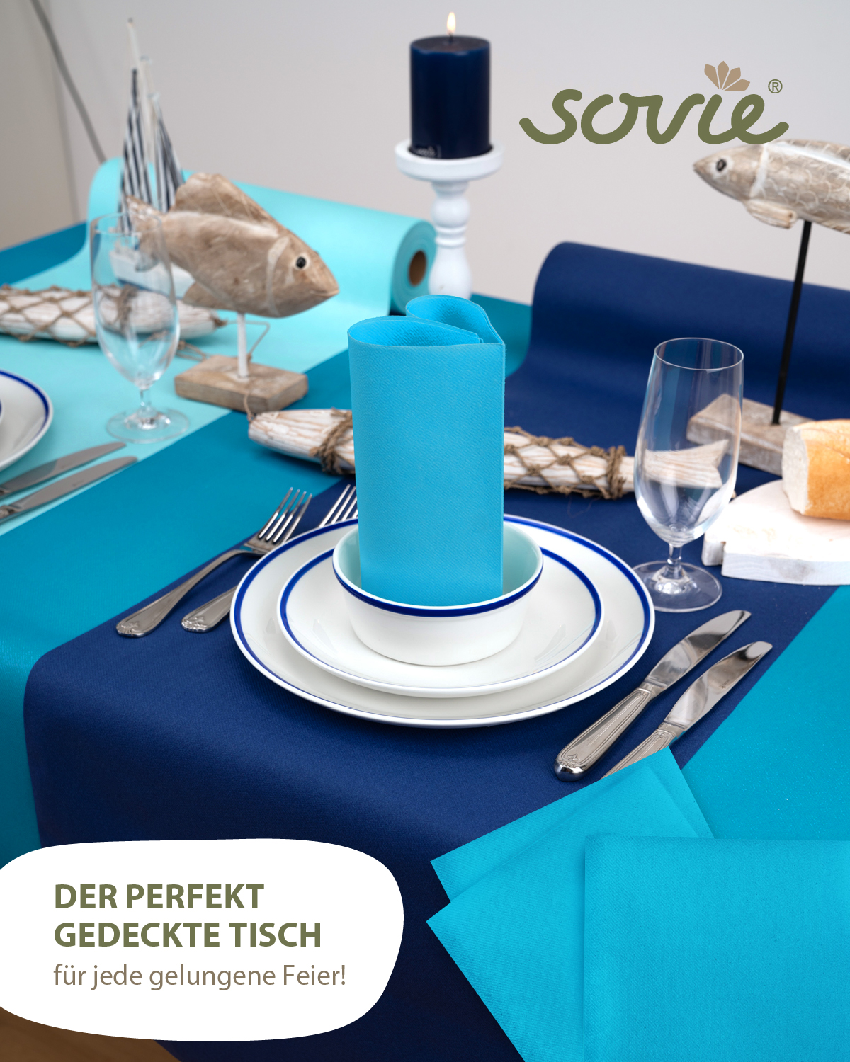 Tischläufer Aquablau aus Linclass® Airlaid 40 cm x 24 m, 4 x 1 Stück