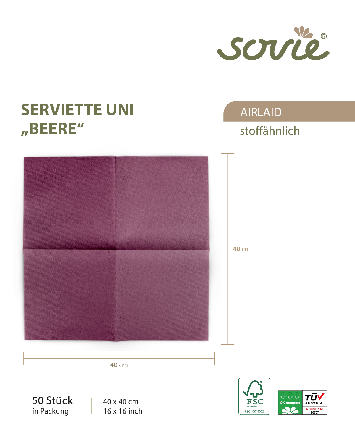 Serviette Marius in Beere aus Linclass® Airlaid 40 x 40 cm, 12 Stück