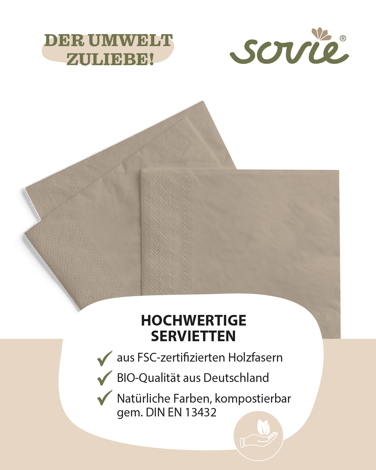 Die großzügige Größe und die natürliche Beige-Grau-Färbung machen diese Servietten zu einer vielseitigen Wahl für verschiedene Anlässe und Veranstaltungen. Sie sind eine einfache Möglichkeit, Ihren Tisch zu verschönern und gleichzeitig für Sauberkeit und Ordnung zu sorgen.