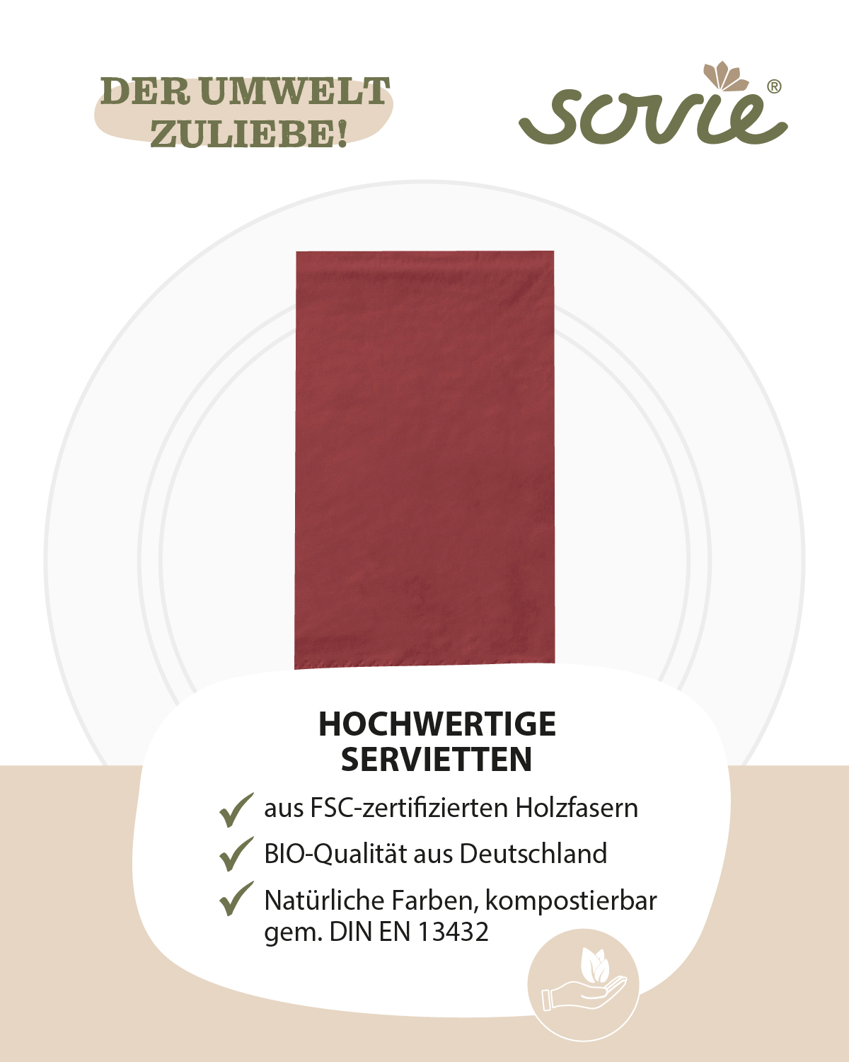 Hergestellt aus hochwertigem Tissue-Material sind diese Servietten angenehm weich im Griff und dennoch strapazierfähig genug, um den Anforderungen Ihrer Veranstaltung standzuhalten. Die tiefen Bordeauxtöne verleihen Ihrem Tisch eine elegante und luxuriöse Atmosphäre, die perfekt für formelle Anlässe wie Galaabende, Hochzeiten oder Weihnachtsfeiern geeignet ist.
